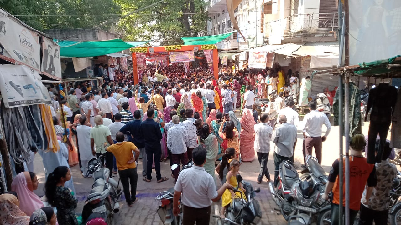 शांति वीर धर्म स्थल से विधि विधान से 49वें दिन आहार के लिए निकले तो पूरे नगर लोगों महिलाओं ने मुनि को देखने जय जयकारों से नगर को गूंजायमान किया जैन साधु देख लो त्याग करना सीख लो हमारे भगवान आए हैं ऐसा पूरे नगर में दृश्य देखने को मिला