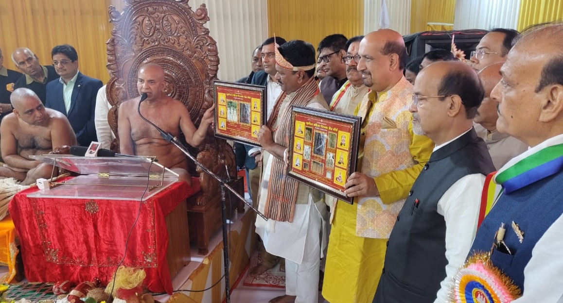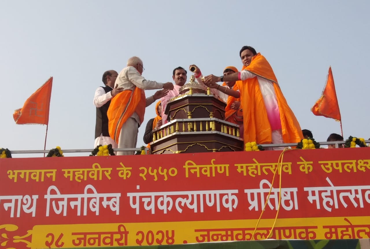 गुवाहाटी : फैंसी बाजार स्थित आदिनाथ नगर (जेल परिसर) में असम के राज्यकिय अतिथि आचार्य श्री प्रमुख सागर महाराज ससंघ एवं मुनि श्री अरिजीत सागर महाराज के पावन सान्निध्य में श्रीमद् 1008 जिनबिंब पंचकल्याणक प्रतिष्ठा महोत्सवम मे रविवार को जन्म कल्याणक महोत्सव मनाया गया। रात में गर्भ कल्याणक की क्रियाएं संपन्न हुई। जहां 56 कुमारियों ने माता की सेवा की और भेंट अर्पित की। वहीं 16 सपने दिखाई गए और महाराज नाभिराय के दरबार में तत्वचर्चा स्वप्न, फल, जिज्ञासा महाराज द्वारा सपनों का फलादेश बताया गया। पंचकल्याणक महोत्सव कि सभी क्रियाएं प्रतिष्ठाचार्य बा. ब्र.हंसमुख शास्त्री के निर्देशन में विधि विधान से संपन्न कर जा रही है। असम सरकार में कैबिनेट मंत्री अशोक सिंघल ने कार्यक्रम में पहुंचे कर आचार्य श्री प्रमुख सागर महाराज एवं मुनि श्री अरिजीत सागर महाराज का आशीर्वाद लिया।