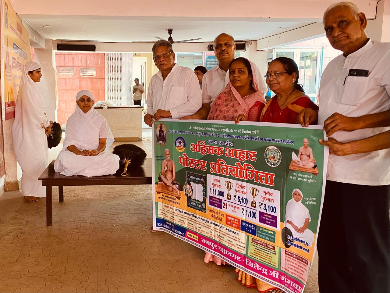 महामंत्री सुनील पहाड़िया व कोषाध्यक्ष पंकज लुहाडिया के अनुसार अहिंसक आहार पोस्टर प्रतियोगिता के प्रेरक आचार्य वसुनंदी जी ने व मार्गदर्शक आर्यिका वर्द्धस्व नंदिनी माताजी ने सभी को मंगल आशीर्वाद दिया तथा कहा कि प्रतियोगिता श्रुत पंचमी के शुभ अवसर से प्रारंभ होगी जिसमे अधिक से अधिक सहभागिता कर प्रतियोगीयो को पोस्टर घर से ही बनाकर सभी स्थानों पर नियुक्त स्थानीय संयोजको को देना है।