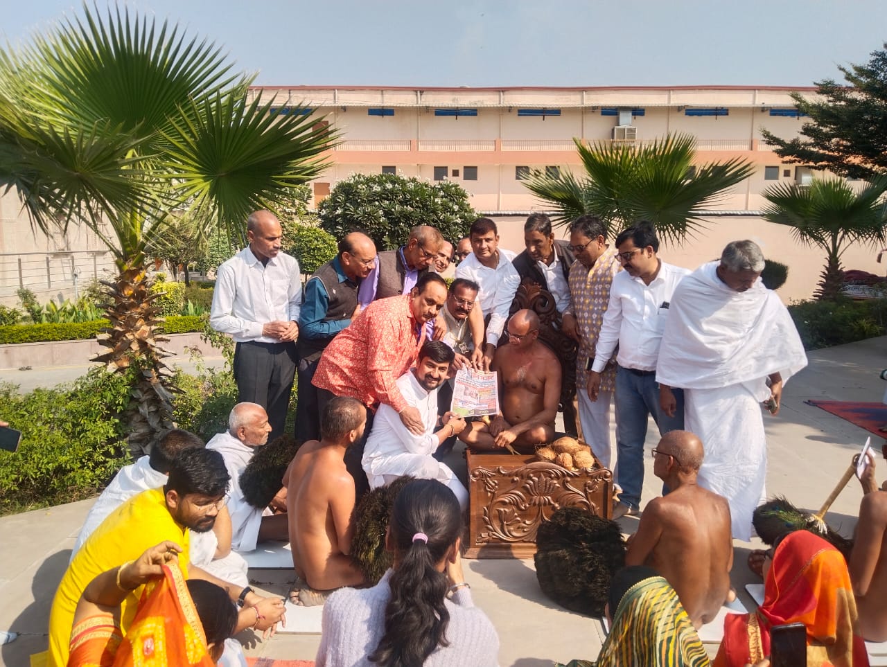 मंडाना स्थित गोयल प्रोटीन समूह फैक्ट्री में परम पूज्य आचार्य विनिश्चय सागर जी महाराज ससंघ के दर्शन का महावीर नगर विस्तार योजना समाज के द्वारा लाभ लिया। महावीर नगर विस्तार योजना में पधारने हेतु श्रीफल भेंट करके निवेदन किया। इस पर अंकित जैन पवन ठोला मुकेश जैन पारस जैन पत्रिका ओम प्रकाश जैन राष्ट्रीय मीडिया प्रभारी पारस जैन पार्श्वमणि पत्रकार उपस्थित थे । यहां पर 130 सालो से निरंतर प्रकाशित होने वाले “जैन गजट” अंक को आचार्य श्री करकमलों में भेट किया । राष्ट्रीय मीडिया प्रभारी पारस जैन “पार्श्वमणि” पत्रकार ने जानकारी देते हुवे बताया कि आचार्य का भव्य ऐतिहासिक वर्षायोग 2025 रामगंजमंडी में हर्षौल्लास के हर्षौल्लास के मंगलमय वातावरण में सानंद सम्पन्न हुआ एक से बढ़कर एक धार्मिक अनुष्ठानों का आयोजन कर चार्तुमास समापन पर भव्य पंच कल्याण प्रतिष्ठा महोत्सव करवाकर जैन समाज में नव चेतना का संचार किया । रामगंजमंडी से बिहार करते हुवे धर्म प्राण नगरी कोटा में मंगल आगमन हुआ। रामगंजमंडी प्रवास के मेरीभावना को संपूर्ण भारत की शिक्षण संस्थाओं के पाठ्यक्रम में लागू किया एवं प्रार्थना के रूप बोली जाए आलेख जो कि भारत की अलग अलग पत्र पत्रिकाओं में प्रकाशित हुआ उसकी फाइल जब आचार्य श्री देखी तो प्रसन्नचित होकर अपना खूब खूब मंगल आशीर्वाद मुझे प्रदान किया था। 35 सालो की कवरेज फाइल भी पूरे संघ को दिखाया।