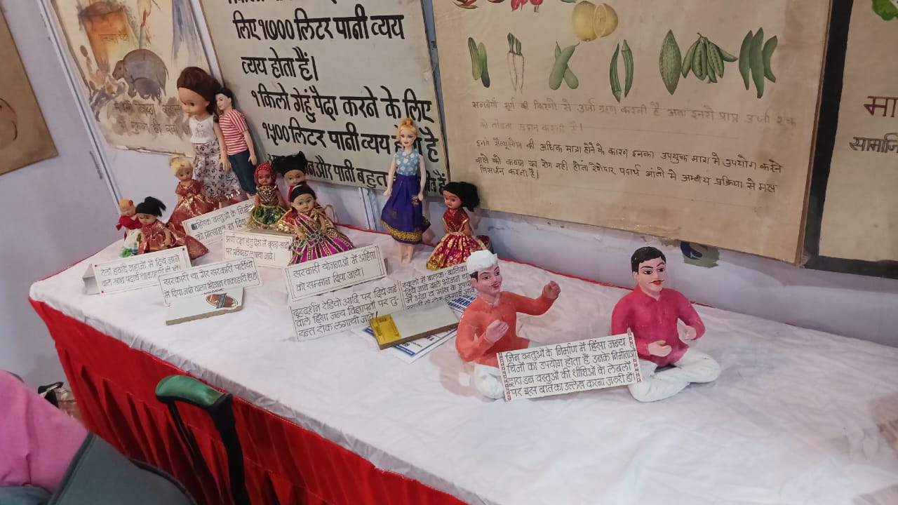 शाकाहार प्रवर्तक विद्वानो के कथन के साथ ,मांसाहार दुष्प्रभाव तथा शाकाहार के फायदे बतलाते हुए 200 पोस्टर के साथ ही अनाज दालें, मसाले,मेवे फल फ्रुट्स व सब्जियों के पोष्टिक तत्वों की जानकारी के साथ प्रदर्शित किया जाता है।