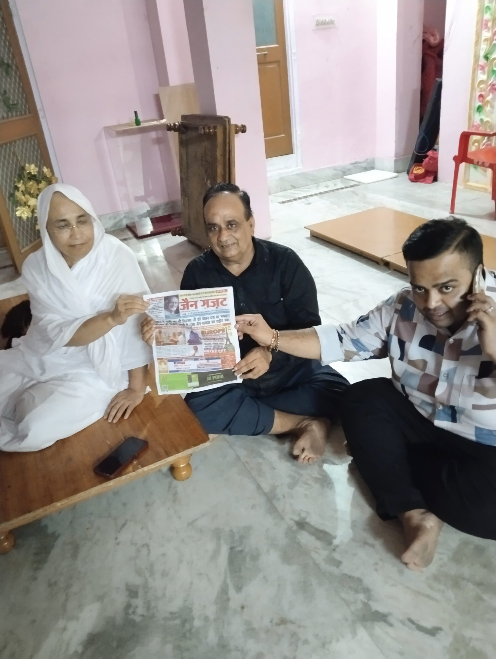 विगत 35 वर्षों से जैन पत्रकारिता के क्षेत्र में उल्लेखनीय योगदान देने वाले जैन युवा पत्रकार गौरव जैन समाज की अनमोलमणि हाड़ौती के कलमकार भाव पूर्ण भजनों की शानदार प्रस्तुति देने वाले मेरी भावना को शिक्षण संस्थाओं के पाठ्यक्रम में लागू करवाने के मिशन को उठाने वाले मुख्य मंत्री भजन लाल जी के द्वारा वर्तमान का श्रमण कुमार की उपाधि से अलृकृत आदिनाथ टी वी चैनल के ब्यौरा चीफ पारस जैन “पार्श्वमणि” पत्रकार को धर्मप्राण नगरी टोंक राजस्थान में विराजमान वात्सल्य वारिधि परम पूज्य आचार्य 108 वर्धमान सागर जी महाराज ससंघ ने प्रसन्नचित मुद्रा में अपना मंगल आशीर्वाद प्रदान किया। इसी के साथ बूंदी देवपुरा में विराजमान मुनि वैराग्य सागर जी एवं मुनि 108 सुप्रभ सागर जी महाराज रामगंज मंडी में विराजमान आचार्य 108 विनिश्चय सागर जी महाराज ससंघ और भवानीमंडी में विराजमान आचार्य विद्या सागर जी महाराज के शिष्य मुनि 108 निष्पक्ष सागर जी महाराज मुनि 108 निष्पह सागर जी महाराज और श्री अतिशय क्षेत्र चमत्कार जी सवाईमाधोपुर विराजमान गणिनी आर्यिका 105 विशुद्धमति माता जी ससंघ ने भी अपना मंगल आशीर्वाद जैन धर्म प्रसार प्रचार के लिए प्रदान किया। इस अवसर पर आदिनाथ टी वो चैनल के (सीईओ) श्री आकाश जैन भी उपस्थित थे। विदित हो कि आकाश जी को अभी हाल हो में दिल्ली में आयोजित विशाल आयोजन में आचार्य प्रज्ञ सागर जी महाराज के सानिध्य में प्रधान मंत्री नरेंद्र मोदी जी को भगवान महावीर स्वामी का स्मृति चिन्ह भेट करने का सुअवसर प्राप्त हुआ है।