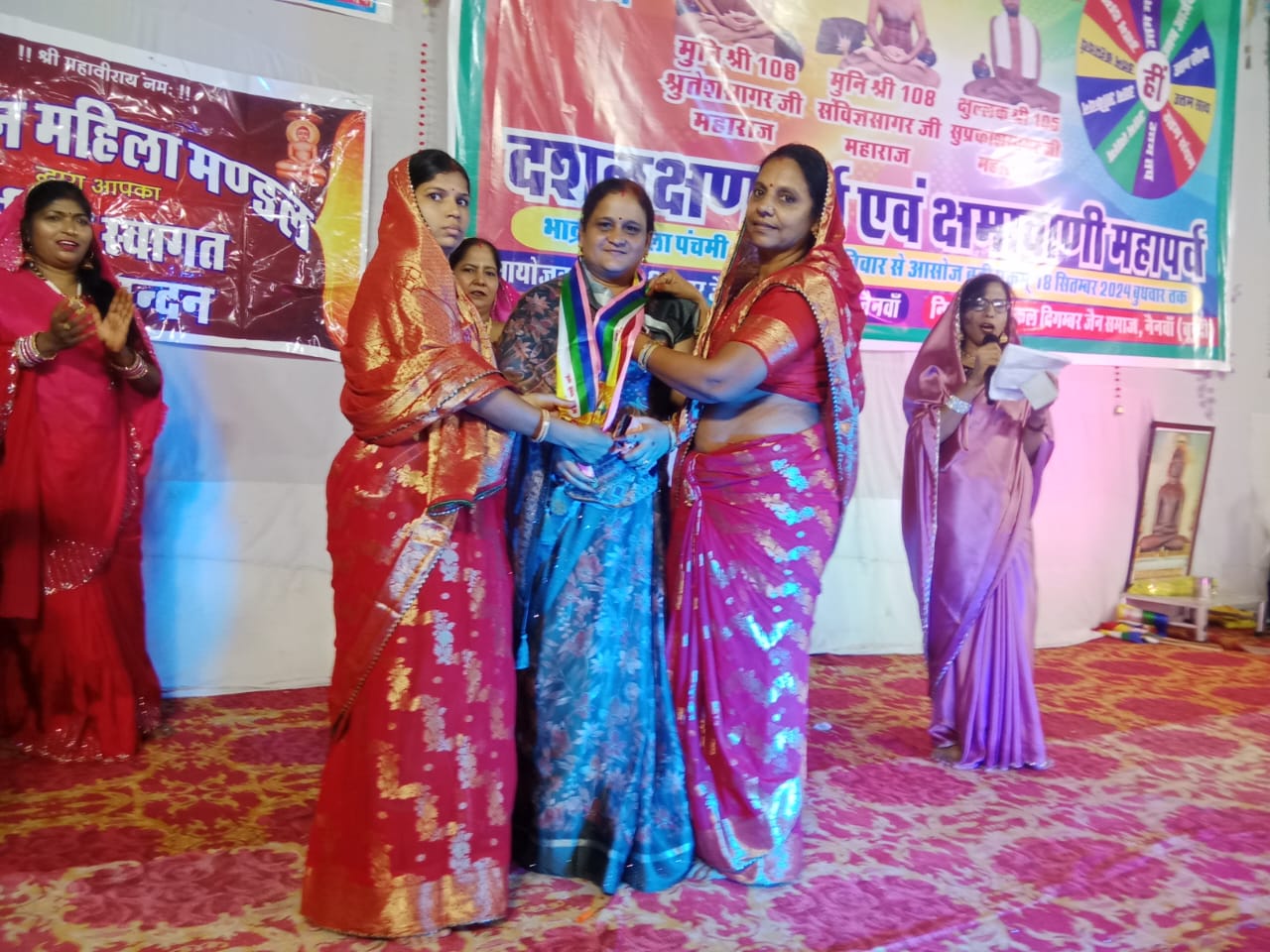 धर्म सभा की अध्यक्षता श्रीमती सीमा जैन मारवाड़ा का स्वागत सम्मान किया गया