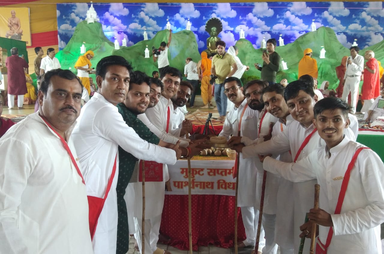 प्रचार प्रसार विभाग के संयोजक ओम प्रकाश सेठी एवं सह संयोजक जय कुमार छाबड़ा ने बताया कि आज प्रातः आचार्य श्री के मुखारविंद से श्रीजी को शांतिधारा करने का परम सौभाग्य झूमरमल- पन्नालाल गंगवाल परिवार एवं ओमप्रकाश- प्रभा देवी सेठी परिवार को प्राप्त हुआ। इस अवसर पर बाल ब्रह्मचारीनी वीना दीदी एवं स्थानीय पंडित संतोष कुमार शास्त्री के सानिध्य में पार्श्वनाथ महामंडल विधान का आयोजन किया गया। जिसमें समाज के बच्चे, पुरुष, एवं महिलाओं ने पारंपरिक वेशभूषा में भाग लिया। मोक्ष सप्तमी के उपलक्ष में समाज के बच्चों ने व्रत (उपवास) कर पुनर्जन किया। समाज के मंत्री वीरेंद्र कुमार सरावगी एवं विजय कुमार गंगवाल ने बताया कि इस मौके पर सम्मेद शिखर की कृति का उद्घाटन झूमरमल पन्नालाल गंगवाल परिवार द्वारा किया गया।कार्यक्रम के दौरान आचार्य श्री विशुद्ध सागर महाराज के आठ दीक्षार्थियों का समाज के द्वारा छोल भराई एवं अभिनंदन किया गया। इस मौके पर सायं 6:00 बजे 23 दीपक से श्रीजी की एवं आचार्य श्री की आरती रामचंद्र सेठी के संयोजन में की गई तत्पश्चा श्री दिगम्बर जैन महिला समिति द्वारा एवं प्रीति सेठी के संयोजन में “वैरागी हो गये पार्श्वनाथ” नामक नृत्य नाटिका का आयोजन किया गया । कार्यक्रम को सफलतापूर्वक आयोजन करने में श्री दिगंबर जैन यूथ फेडरेशन के सभी सदस्यों का सराहनीय सहयोग रहा यह जानकारी समाज के प्रचार-प्रसार विभाग के सह संयोजक सुनील कुमार सेठी द्वारा एक प्रेस विज्ञप्ति मे दी गई है।।