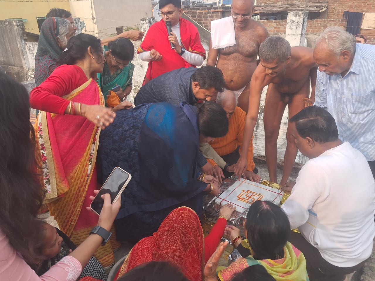 भिंड प.पू. गणाचार्य श्री 108 विराग सागर जी महाराज के प्रिय शिष्य एवं प.पू. उच्चारणावार्य श्री 108 विनम्र सागर जी महाराज के मंगल आशीर्वाद से जिन मंदिर जीर्णोद्धारक संत, प्रशात मूर्ति श्रमण मुनि श्री 108 विनयसागर जी महामुनिराज एवं प.पू. क्षु. श्री 105 विधेय सागर जी के सानिध्य में एवं प्रतिष्ठाचार्य विजय जैन के निर्देशन में श्री 1008 पार्श्वनाथ दिगंबर जैन मंदिर हलवाई खाना, में आज दिनांक 21/12/2023 को आचार्य विराग-विनम्र संत निलय का भव्य शिलान्यास कार्यक्रम का सम्पन्न हुआ परम् पूज्य श्रमण मुनि श्री 108 विनय सागर जी गुरुदेव ससंध आशीर्वाद से और प्रतिष्ठाचार्य विजय जैन के निर्देशन में सर्वप्रथम ध्वजारोहन का कार्यक्रम हुआ पंडित जी के मंत्रोच्चारण कर ध्वजारोहन करवाया गया श्री 1008 पार्श्वनाथ दिगंबर जैन मंदिर हलवाई खाना, भिण्ड कमेटी के अध्यक्ष एवं कमेठी सदस्यों ने ध्वजारोहन किया उसके पश्चात शिलाओं की बोली रखी गई सर्वप्रथम बोली बल्लू जैन चंबल डेरी ने प्राप्त की