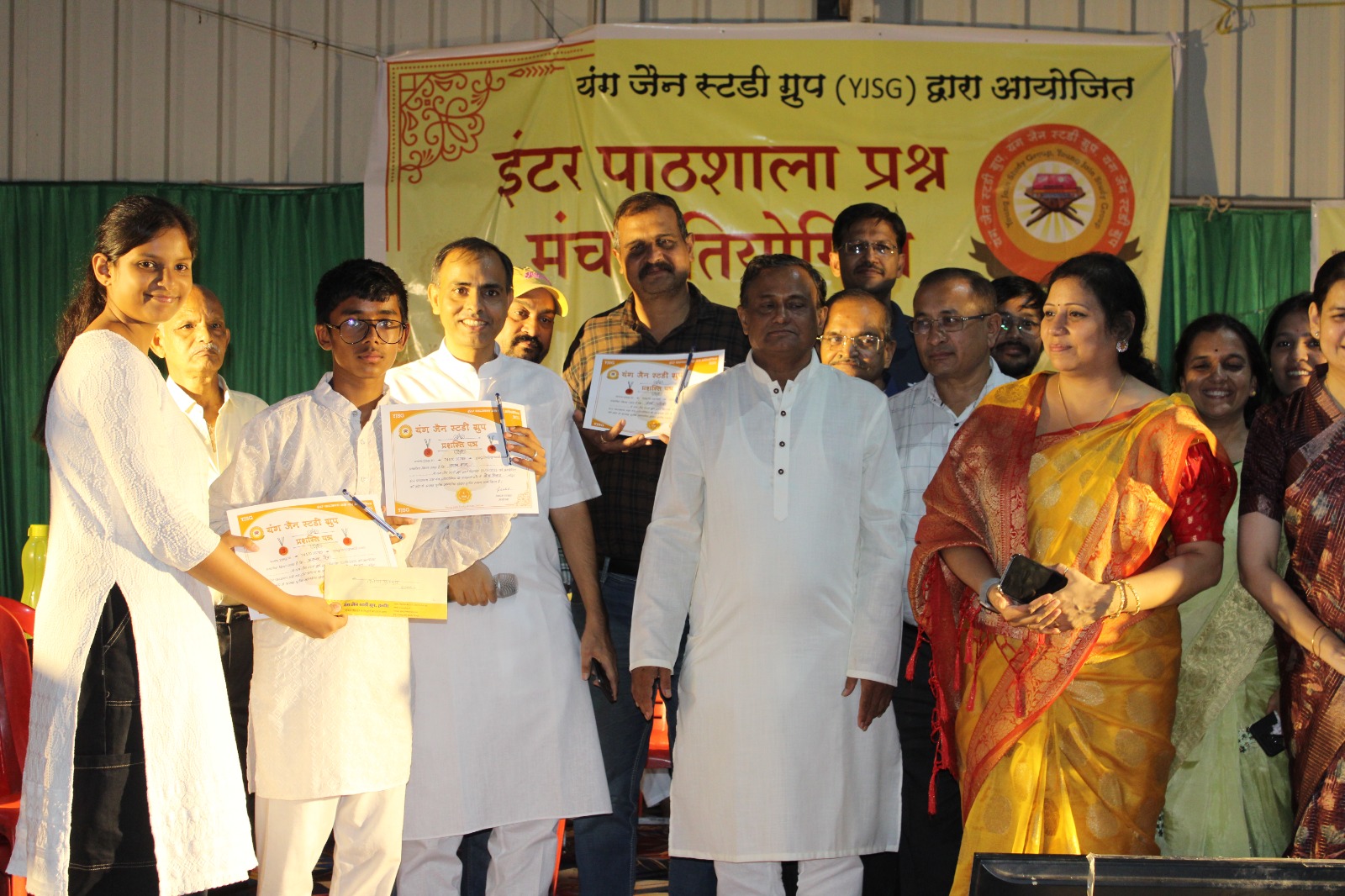 यंग जैन स्टडी ग्रुप द्वारा इंदौर शहर के जिन मंदिरों में संचालित धार्मिक पाठशालाओं की प्रश्नोत्तरी प्रतियोगिता का फाइनल राउन्ड रविवार दिनांक 3 अगस्त को मोदीजी की नसिया मे आयोजित किया गया