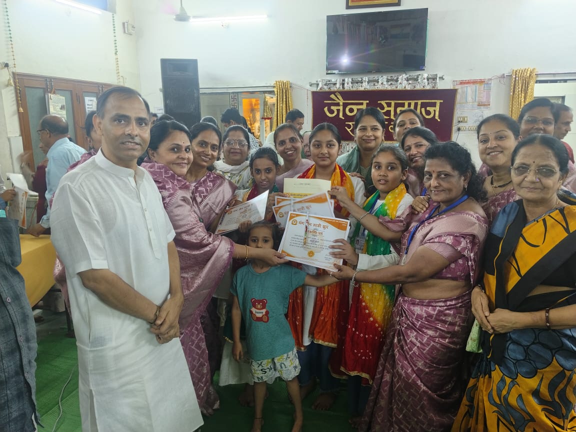 श्रीमती मिंटा अजय जैन ने बताया कि जैन समाज वरिष्ठ विद्वान प्रकाश छाबड़ा जी के द्वारा प्रकाशित लेवल 1 से 5, छहढाला के भाग एवं सामान्य ज्ञान की यह प्रतियोगिता श्री चंद्रप्रभ दिग. जैन मंदिर राजेंद्र नगर में आयोजित की गई, जिसमें 4 पाठशालाओं ने सहभागिता राजेंद्र नगर, वैशाली नगर , परिवहन नगर एवं अवॉसा के विद्यार्थियों ने भाग लिया।”प्रश्न मंच का संचालन के पूर्व व्दीप प्रज्वलित श्रीमान कमल जी बाकलीवाल,कैलाश जी लुहाड़िया ने किया ,मंगलाचरण पॉठशाला की टीचर श्रीमती श्रुती जैन एंव टीम व्दारा प्रस्तुत किया गया! प्रश्न मंच मे अनेक अनेक धार्मिक प्रश्न पूछे गए की छोटे छोटे बच्चों ने तुरंत जबाब दिए ओर बडे देखते रह गए !