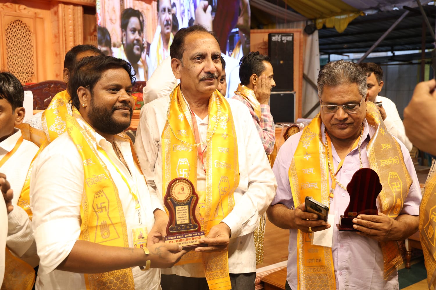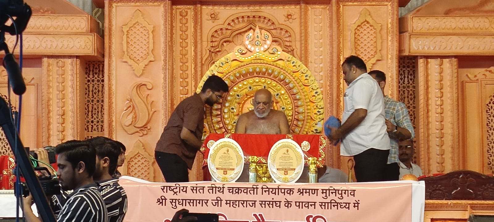 अशोकनगर (मनोज जैन नायक) परम पूज्य आध्यात्मिक संत निर्यापक श्रमण मुनि पुंगव श्रीसुधासागरजी महाराज ससंघ क्षुल्लक गम्भीर सागर जी महाराज क्षुल्लक श्री वरिष्ठ सागर जी महाराज क्षुल्लक श्री विदेह सागर जी महाराज ससंघ के सानिध्य में आज दोपहर में सुभाष गंज जसिं मंदिर प्रांगण में अखिल भारतीय जैन जर्नलिस्ट एसोसिएशन आईजा के संयोजकत्व में जैन समाज अशोक नगर द्धारा मध्यप्रदेश महिला मोर्चा की पूर्व अध्यक्ष एवं सागर से सांसद लता वानखेड़े के मुख्य अतिथि एवं पूर्व केन्द्रीय मंत्री प्रदीप जैन आदित्य, पूर्व विधायक जजपाल सिंह जज्जी ,पूर्व विधायक सागर सुनील जैन, नपाध्यक्ष नीरज मनोरिया के विशेष आतिथ्य में आयोजित किया गया। इस दौरान आइजा द्वारा परम पूज्य निर्यापक श्रमण मुनि पुंगव श्रीसुधासागरजी महाराज को राष्ट्रसंत की उपाधि से अलंकृत किया गया इस दौरान पधारे अतिथियों का सम्मान किया गया