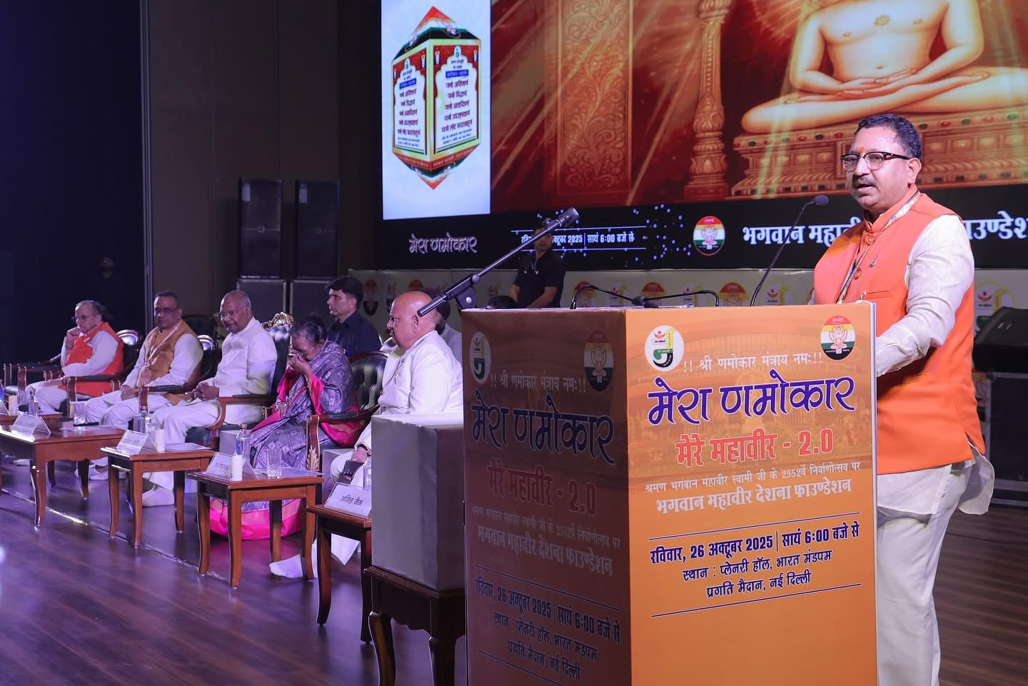 यह विशेष अवसर भगवान महावीर के 2552वें निर्वाण महोत्सव के पावन उपलक्ष्य में आयोजित “मेरे महावीर 2.0 – मेरा णमोकार” कार्यक्रम के दौरान प्लेनरी हॉल भारत मंडपम, प्रगति मैदान में देखने को मिला।