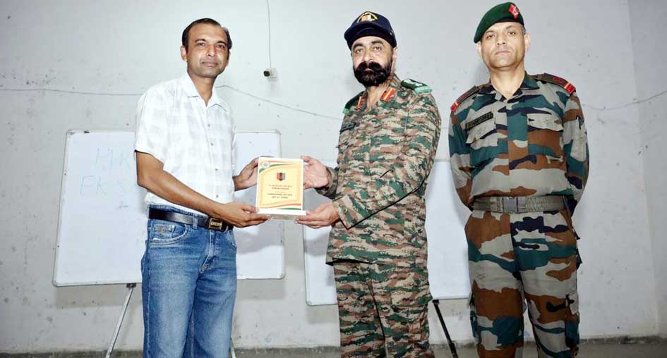 मुख्य वक्ता को सम्मानित करते अधिकारी व उपस्थित कैडेट्स……………….(डा. आर. के. जैन)