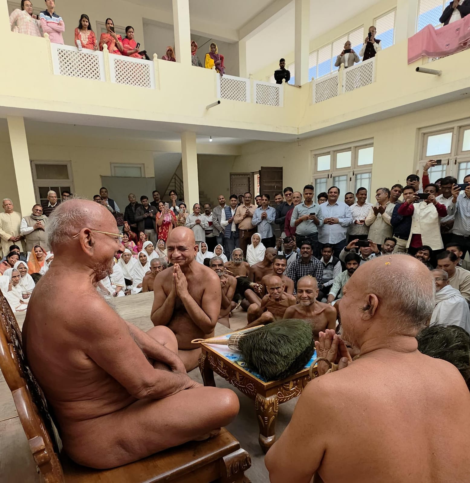 की तीनों परंपरा मंच पर प्रथमाचार्य श्री शांति सागर जी परंपरा के आचार्य श्री वर्धमान सागर, आचार्य श्री आदि सागर परंपरा के आचार्य श्री प्रज्ञा सागर जी एवं अन्तर्मना आचार्य श्री प्रसन्न सागर जी एवं आचार्य श्री शांति सागरजी छाणी परंपरा की आर्यिका श्री स्वस्ति भूषण माताजी मंचासीन हुई। धर्मसभा में आर्यिका श्री स्वस्ति भूषण माताजी ने उपदेश में 12 तप के बारे में बताया, जैन समाज की पहचान दिगंबर साधुओं से होती है तीर्थंकर भगवान यथानाम, तथागुण अनुरूप होकर असंभव को संभव बनाते हैं।