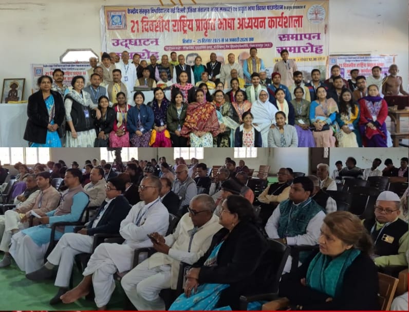 नैनागिरि ।। रत्नेश जैन रागी बकस्वाहा।। केन्द्रीय संस्कृत विश्वविद्यालय, नई दिल्ली (शिक्षा मंत्रालय, भारत सरकार) तथा प्राकृत भाषा विकास फाउण्डेशन के संयुक्त तत्वावधान में आयोजित 21 दिवसीय राष्ट्रीय प्राकृत भाषा अध्ययन कार्यशाला का उद्घाटन सत्र 25 दिसम्बर 2025 को अत्यन्त भव्य, गरिमामय एवं प्रेरणादायी वातावरण में सम्पन्न हुआ। यह सत्र केवल एक औपचारिक उद्घाटन नहीं, बल्कि प्राकृत भाषा के पुनर्जागरण का सशक्त उद्घोष सिद्ध हुआ। प्रातः प्रारम्भ हुए इस कार्यक्रम में देश के विभिन्न 14 प्रान्तों से आए विद्वान, शोधार्थी, शिक्षक एवं प्रतिभागी उपस्थित रहे।
