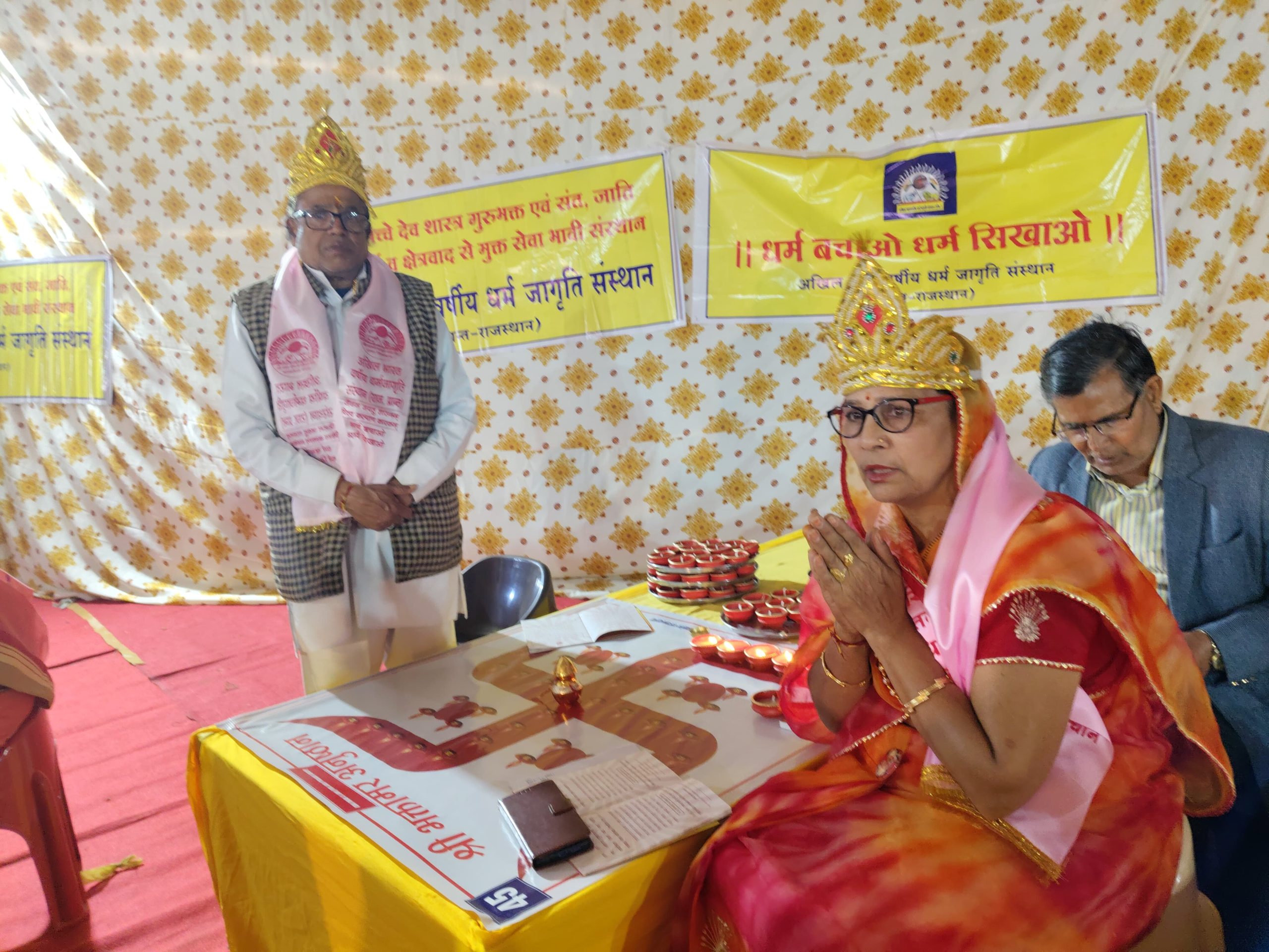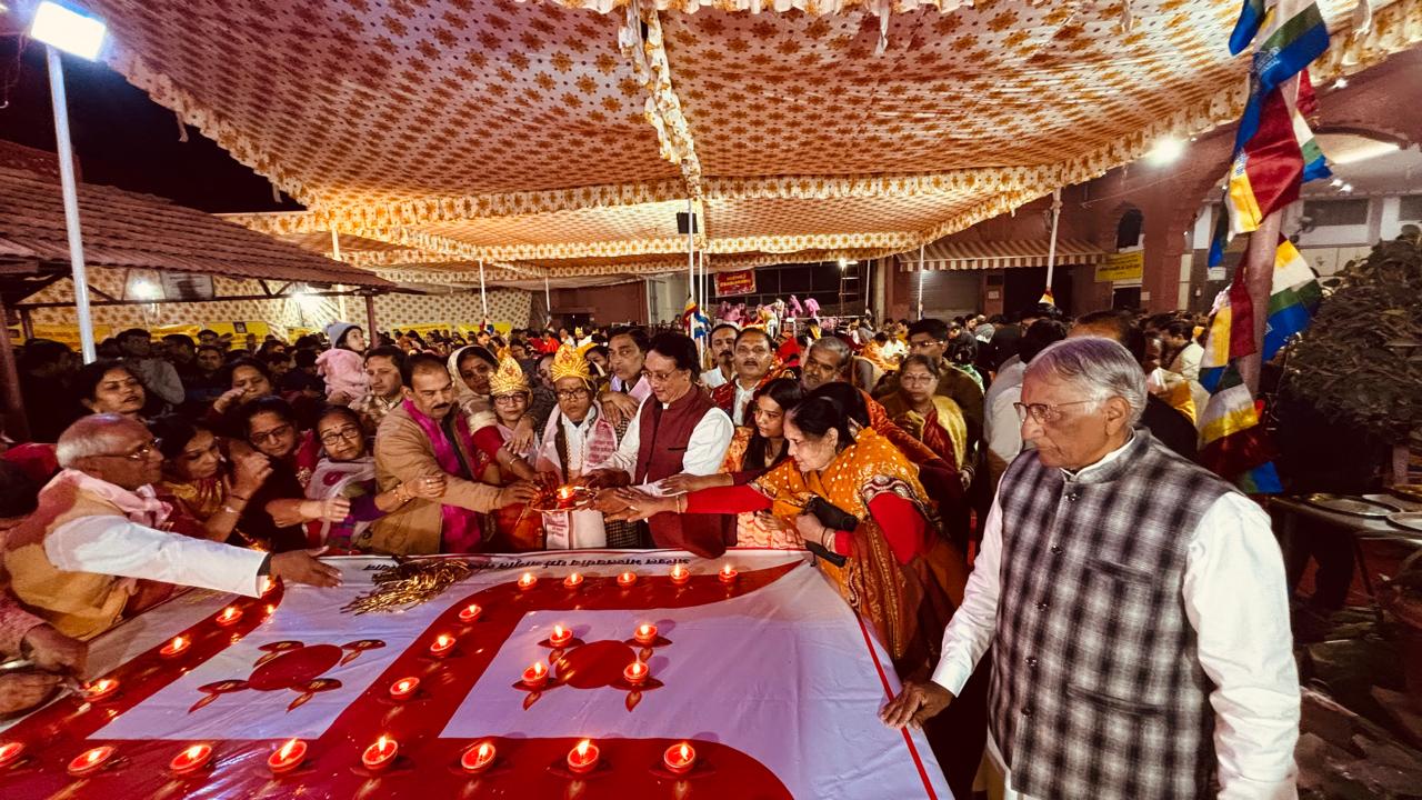 जयपुर -28 जनवरी , अखिल भारतवर्षीय धर्म जागृति संस्थान राजस्थान प्रांत के तत्वावधान में अतिशय क्षेत्र संघीजी के मन्दिर सांगानेर में अतिशयकारी भगवान आदिनाथ के दरबार में जैन धर्म के प्रथम तीर्थंकर १००८ भगवान आदिनाथ के निर्वाणोत्सव के शुभ अवसर पर आचार्य वसुनंदी महाराज के पावन आशीर्वाद से 2401 दीपकों से 48 मंडलीय श्री भक्तामर दीप महाअर्चना का आयोजन दीपोत्सव के रूप में हुआ, कार्यक्रम में जैन गजट के संवाददाता राजाबाबू गोधा ने शिरकत करते हुए बताया की संस्थान एवम् मन्दिर जी के पदाधिकारियों द्वारा अतिशयकारी मूल नायक भगवान आदिनाथ के समक्ष श्रीफल भेंट कर मुख्य मण्डल पर मंत्रोचार के साथ प्रांतीय अध्यक्ष पदम जैन बिलाला ने गजेंद्र, प्रवीण, विकास बडजात्या परिवार जनों के साथ मंगल कलश स्थापित किया। साथ ही सभी 48 मण्डलों पर पुण्यार्जकों द्वारा भी विधि विधान पूर्वक मंगल कलश स्थापित किये गये, कार्यक्रम भक्तामर का शुभारम्भ मंगलाचरण के साथ हुआ । जिसके बाद प्रत्येक मण्डल से इन्द्र- इंद्राणियों ने भक्ति भाव के साथ नाचते गाते हुए ग्रुपों आकर मुख्य मण्डल पर दीपक चढ़ायें,धर्म जागृति संस्थान के कार्याध्यक्ष अनिल जैन व कोषाध्यक्ष पंकज लुहाड़िया ,महेश काला ने बताया कि इस दीप अर्चना में 48 मण्डलों पर जयपुर की कालोनियों के परिवार दूर दूर से पधारें तथा पूजाअर्चना की संगीतमय प्रस्तुति श्री विद्या सागर यात्रा संघ के मनीष-रचना चौधरी एवम् साथियों द्वारा शानदार प्रस्तुति दी गई ,संस्थान के सुनील पहाड़िया ,राजीव लाखना के अनुसार कार्यक्रम के संरक्षक शान्तिकुमार- ममता सोगानी, व कांता रश्मि कांत सोनी , दीप प्रज्जवलन कर्ता राजीव -सीमा गाजियाबाद वाले परिवार का संस्थान के पदाधिकारियो ने स्वागत किया ,धर्म जागृति संस्थान के मुख्य उद्देश्य में सहयोगी साधु सन्तों के प्रवास ,चातुर्मास आदि कार्यों में सहयोग कर्ताओं का राष्ट्रीय मन्त्री संजीव जैन दिल्ली तथा प्रचार मंत्री संजय बडजात्या कामा आदि द्वारा सम्मान किया गया जिसमे वरुण पथ , प्रताप नगर , थड़ी मार्केट , मीरा मार्ग , दुर्गापुरा , कीर्ति नगर , बरकत नगर ,जयपुर, फागी समाज सहित विभिन्न जगहों से आये पदाधिकारियों का अभिनन्दन किया गया, गोधा ने बताया कि कार्यक्रम में प्राकृत चक्रवृत्ति आचार्य १०८ वसुनन्दी महामुनिराज द्वारा रचित बहुचर्चित ग्रंथ “अशोक रोहिणी” का भव्य विमोचन अतिथियों द्वारा किया गया। यह ग्रंथ स्वाध्याय भावना के साथ सभी मण्डल धारकों को उपहार स्वरूप दिया गया , कार्यक्रम में प्रांतीय अध्यक्ष पदम जैन बिलाला ने मण्डल पुण्यार्जकों व पधारे सभी श्रावकों तथा दिल्ली के राजीव जैन- रानु परिवार का आभार व्यक्त किया, तथा संघी जी मन्दिर के अध्यक्ष महावीर बज,