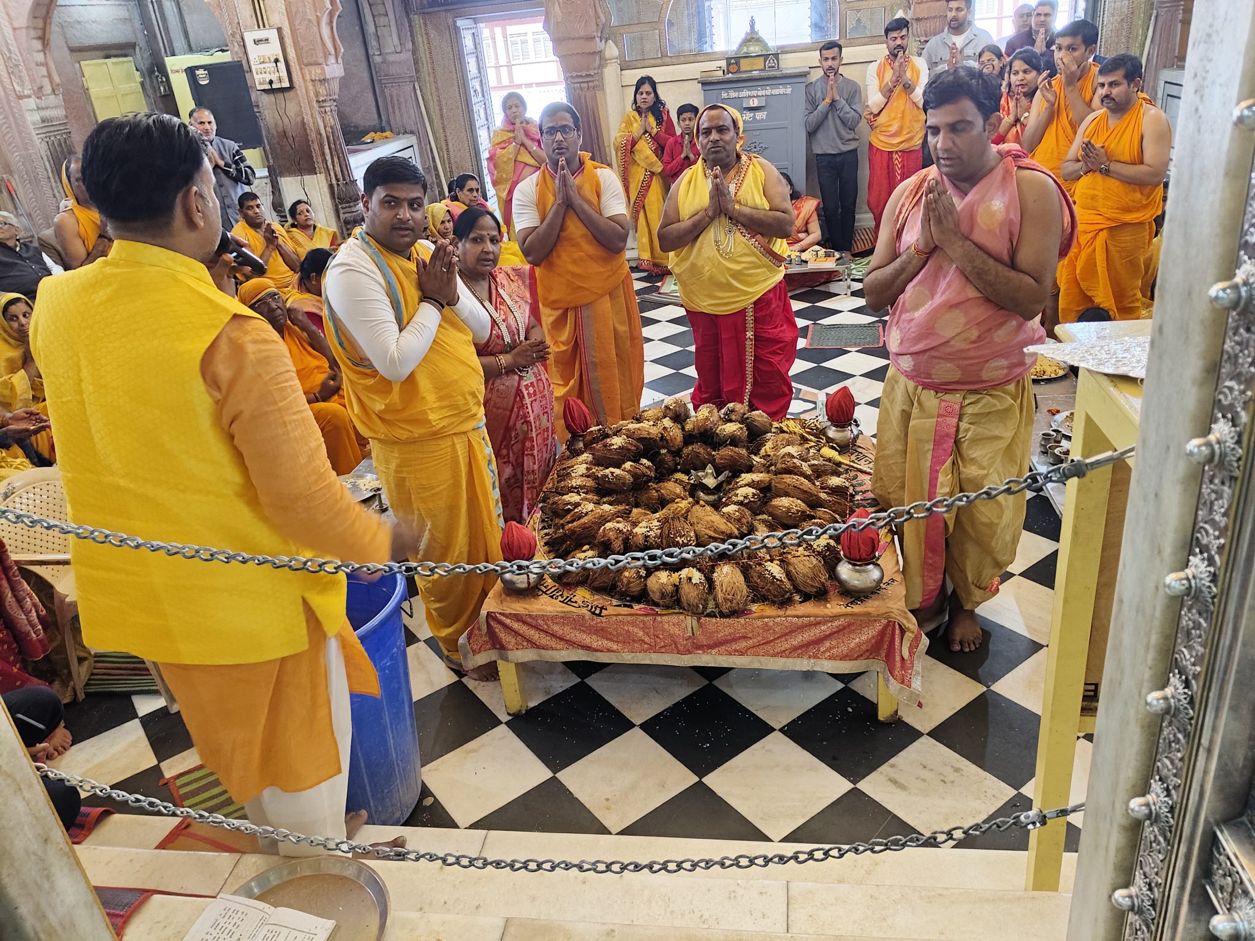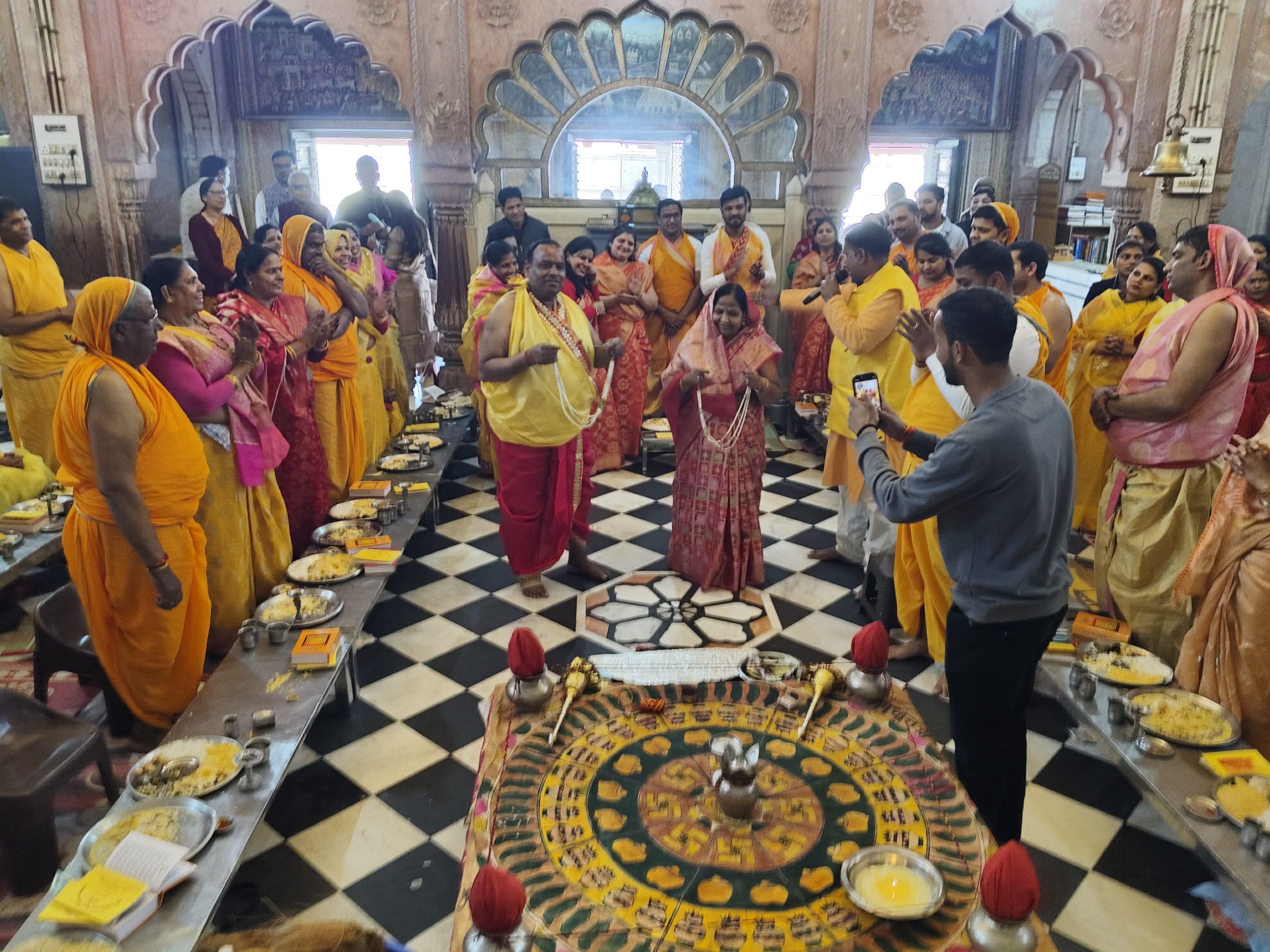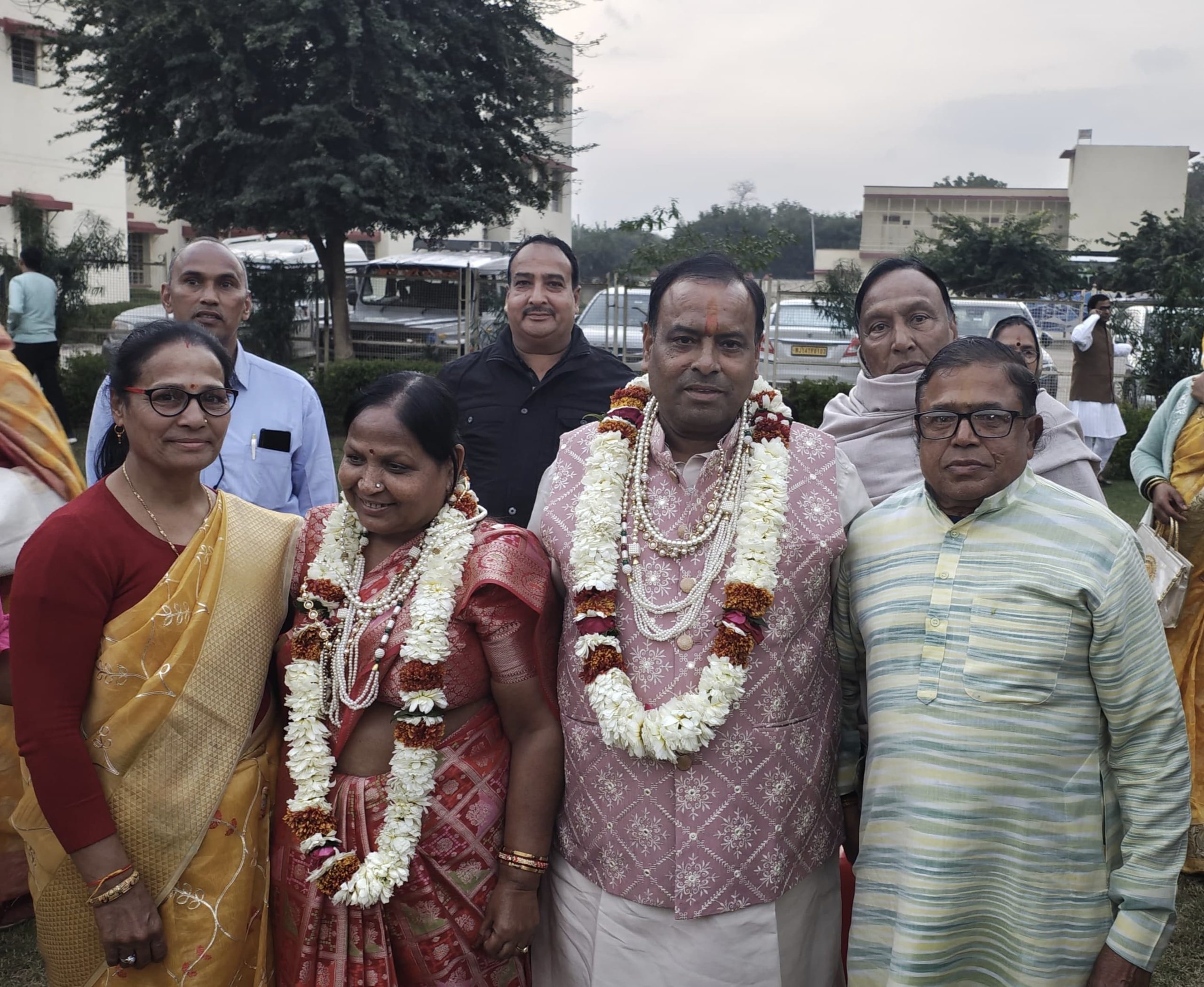 प्रसिद्ध समाजसेवी देव, शास्त्र, गुरु के परम भक्त श्री अनिल कुमार जी -श्रीमती उषा जी पांड्या बनेठा वाले (सांगानेर) निवासी ने 23 जनवरी 2025 को शादी की 42 वीं वैवाहिक वर्षगांठ अतिशय क्षेत्र श्री महावीर जी में एतिहासिक रूप से हर्षोल्लास पूर्वक मनायी , कार्यक्रम में जैन महासभा के प्रतिनिधि राजाबाबू गोधा ने शिरकत करते हुए बताया कि उक्त कार्यक्रम में पांड्या परिवार ने 300 से अधिक मेहमानों, शुभचिंतकों को श्रीमहावीरजी में दर्शन करवाकर अक्षय पुण्य प्राप्त किया ,कार्यक्रम में वैवाहिक वर्षगांठ की खुशी में पांड्या परिवार की अगुवाई में प्रतिष्ठाचार्य मुकेश कुमार जैन के दिशा निर्देश में विभिन्न मंत्रोच्चारणों के द्वारा शांतिनाथ महामंडल विधान की पूजा अर्चना की जिसमें 151श्रावक श्राविकाओं ने प्रसिद्ध संगीतकार वॉइस आफ पिंक सिटी नरेंद्र कुमार जैन की टीम के द्वारा विभिन्न भजनों की स्वर लहरियों के साथ नाचते- गाते विधान में श्रीफलों द्वारा अर्घ्य अर्पित कर पूजा अर्चना कर सुख समृद्धि की कामना की, गोधा ने बताया कि बाद में कार्यक्रम के तहत प्रतिष्ठाचार्य मुकेश कुमार जैन के द्वारा विभिन्न मंत्रोच्चारणों के बीच पांड्या परिवार के द्वारा क्षेत्रपाल (रक्षपाल )बाबा के चोला चढ़ाने के बाद 1-600 ग्राम का जयकारो के साथ सामूहिक रूप से चांदी का मुकुट चढ़ाकर सुख समृद्धि की कामना की गई कार्यक्रम में सभी परिवार जनों,मेहमानों,को दोनों टाइम शानदार स्वरूची भोज दिया गया,बाद में सभी आगंतुको ने श्री अनिल कुमार जी-श्रीमती उषा जी पांड्या को वैवाहिक वर्षगांठ की खुशी में माल्यार्पण करते हुए भविष्य की मंगलमय शुभकामनाएं देकर उज्जवल भविष्य की कामना की, जानकारी पर बताया कि उक्त परिवार साधु चर्या एवं धर्म चर्या में अग्रणी रहता है, आपने देश के विभिन्न तीर्थो पर , चिकित्सा क्षेत्र पर, शिक्षा के क्षेत्र पर, असहाय वर्ग पर तथा विभिन्न धार्मिक आयोजनों में अथाह सहयोग देकर अक्षय पुण्य अर्जित किया है।आप विभिन्न धार्मिक तीर्थ क्षेत्रों के, विभिन्न संस्थाओं के पदों पर सुशोभित है, आप प्रज्ञा जी मुनिराज के परम भक्त हैं तथा देश के सभी साधु सन्तों का आप पर मंगलमय आशीर्वाद प्राप्त है। उक्त कार्यक्रम में कैलास सेठी वरूण पथ,सतीश पापड़ीवाला झोटवाड़ा,छोटा गिरनार बापू गांव के अध्यक्ष प्रकाश बाकलीवाल दुर्गापुरा, पारस बाकलीवाल सांगानेर, राजस्थान जैन सभा के नवनिर्वाचित सदस्य चेतन जैन निमोडिया, रामजीलाल पाटोदिया बापू गांव, महावीर पराणा निवाई , विमल पाटौदी मंडा, विक्की बडजात्या,मनोज जैन बनेठा, नरेश जैन सिद्धार्थ नगर, पवन छाबड़ा सांगानेर, हिमांशु- केनी सोगानी दुर्गापुरा, राजाबाबू गोधा -चित्रा गोधा एवं नितिन -निशा, विपिन- परमा, अदिति, जीवि