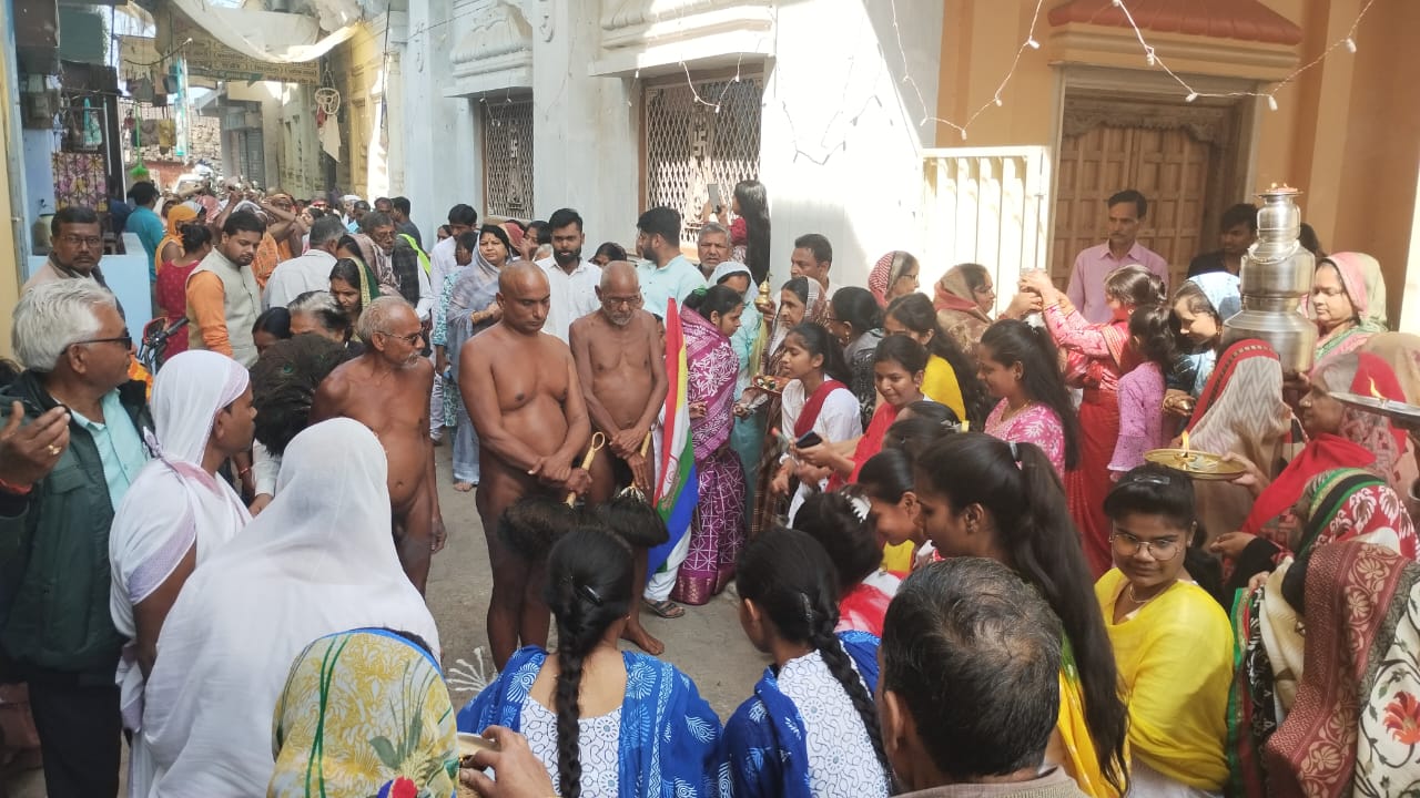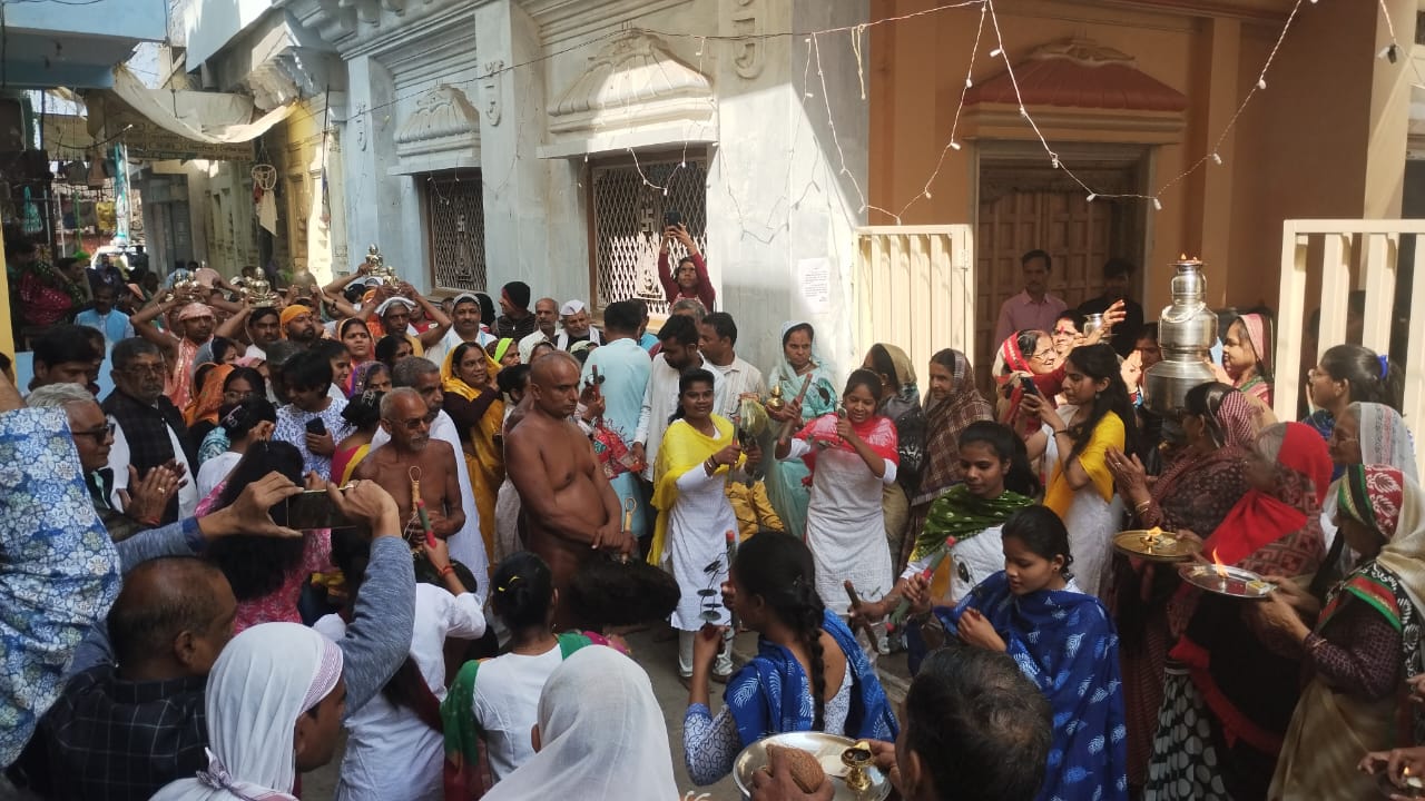 दिगंबर जैन समाज बूंदी की मुनि भक्त प्रियंका जैन ने जैन गजट को जानकारी देते हुए बताया दिगंबर मुनि की आगमन पर पूरे नगर को तोरण द्वार रंगोलिया पुष्य वर्षों गाजे बाजे से दिगंबर जैन मंदिर में प्रवेश कराया