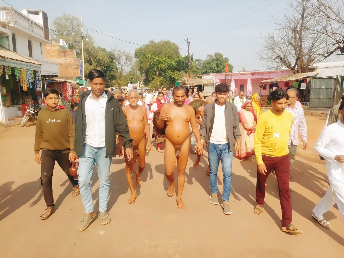 ग्राम हटा के दिगंबर जैन समाज को जूही मालूम हुआ तो संपूर्ण जैन समाज अपार महिलाएं युवक युवतियों सहित 1 किलोमीटर ग्राम के बाहर जैन मुनि की भव्य अगवानी करने पहुंचे
