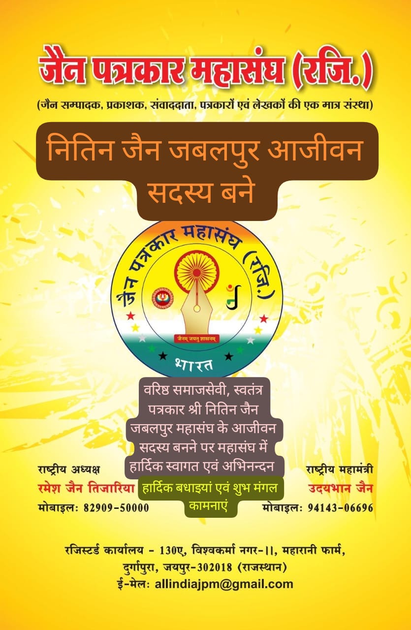 आजीवन सदस्य – जैन पत्रकार महासंघ (रजि.)