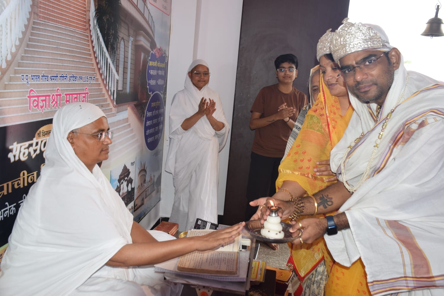 श्री दिगंबर जैन अतिशय क्षेत्र सहस्त्रकूट विज्ञातीर्थ गुंसी राजस्थान में परम पूज्य भारत गौरव गणिनी आर्यिका गुरुमां 105 विज्ञाश्री माताजी ससंघ का चातुर्मास चल रहा है। पर्युषण महापर्व में दशलक्षण मंडल विधान के चौथे दिन उत्तम शौच धर्म एवं अष्टमी पर्व के शुभ अवसर पर प्रतिक जैन सेठी ने बताया की आज पुनः भगवान शांतिनाथ जी का देवों द्वारा सुगंधित अभिषेक किया गया। लगातार चल रही निस्वार्थ भक्ति आराधना का साक्षात फल देवों द्वारा किया जाने वाला यह अभिषेक है,इसमें कोई संदेह नहीं। भक्ति भाव के साथ देवगण भी भगवान की स्तुति आराधना करने में दत्तचित्त है। प्रतिक जैन सेठी ने बताया की आज मंडल पर 21 अर्घ्य चढ़ाकर उत्तम शौच धर्म की पूजन की गई। पुष्पदंतनाथ भगवान के मोक्ष कल्याणक के अवसर पर निर्वाण लाडू चढ़ाने का सौभाग्य प्रशांत जैन शास्त्री आगरा सपरिवार ने प्राप्त किया। पूज्य गुरुमां ने अनशन व्रत को धारण किया। दशलक्षण विधान के पुण्यार्जक बनने का सौभाग्य श्रीमान सुरेश जी अमित ठोलिया विवेक विहार जयपुर एवं पद्मचंद जी राजरानी गंगवाल निर्माण नगर जयपुर सपरिवार ने प्राप्त किया। निवाई जैन समाज के गुरु भक्तों ने पूज्य गुरु मां का आशीर्वाद प्राप्त किया।