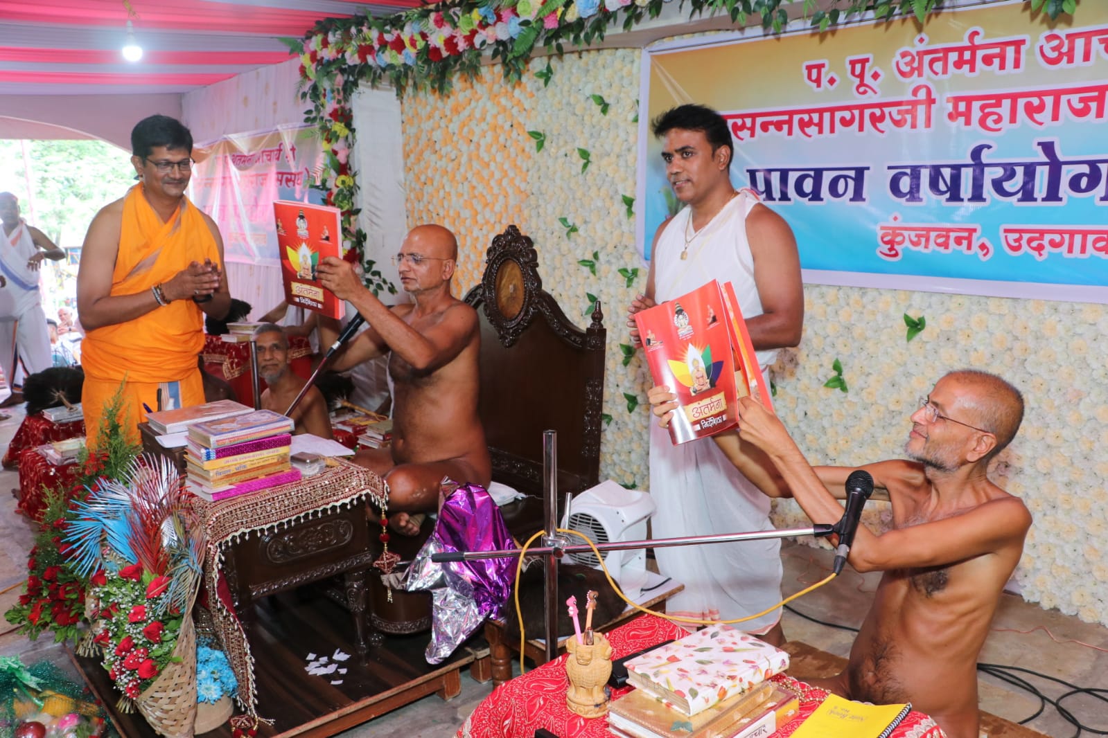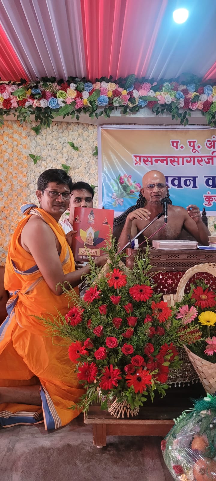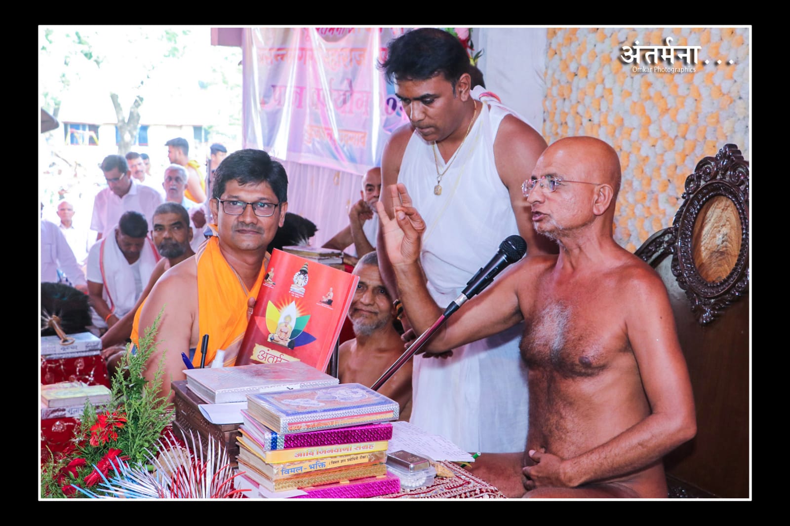 औरंगाबाद /उदगाँव :-नरेंद्र /पियूष जैन पूर्णिमा पर वर्तमान के परम तपश्वि दिगम्बर जैन सन्त अंतर्मना आचार्य श्री 108 प्रसन्न सागर जी महाराज के हाथो से अंतर्मना गुरुभक्त परिवार निर्देशिका का विमोचन हुआ। जहाँ अब सम्पूर्ण देशभर के अंतर्मना गुरुभक्त परिवार की जानकारी उक्त निर्देशका में उपलब्ध रहेगी। जानकारी देते हुए गुरु भक्त व अन्तर्मना स्वर्णिम जन्मजयंती महोत्सव मीडिया प्रभारी पीयूष कासलीवाल नरेंद्र अजेमरा ने बताया कि उक्त निर्देशिका का सफल संकलन डॉक्टर संजय जैन इंदौर ने किया। वही अपनी अथक मेहनत प्रयास से देशभर के गुरुभक्तों की सम्पूर्ण जानकारी विकल्प सेठी सोनकच्छ व नितेश पाटनी इचलकरंजी ने एकत्रित करते हुए लगभग 8 माह में ही उक्त निर्देशिका के स्वरूप को सबंधित प्रदेश के नक्शे, जनसंख्या एवं गुरुभक्तो की सम्पूर्ण जानकारी को ध्यान में रखते हुए तैयार किया गया है । गुरुदेव ने उक्त निर्देशिका को देखते हुए अपना मंगल आशीर्वाद सहयोगी भक्तो को देते हुए कहा कि ये एक बहुत बड़ी सफल उपलब्धि है। जो आपस में एक दूसरे गुरुभक्तों के सहयोग के काम आएगी। अब भारत एवं दुनियाभर के सभी क्षेत्रों के अंतर्मना गुरु भक्तों की संपूर्ण जानकारी इस निर्देशिका मे रहेगी साथ ही नवीन जुड़ने वाले भक्तो की जानकारी भी समयनुसार बड़ा दी जावेगी। नरेंद्र अजमेरा पियुष कासलीवाल औरंगाबाद