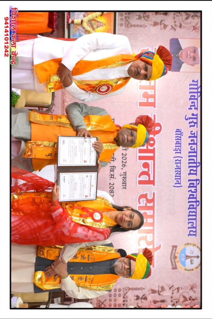 नौगामा – कस्बे की होनहार बेटी पूर्वी जैन ने एम.ए. हिंदी साहित्य में स्वर्ण पदक हासिल कर क्षेत्र का मान बढ़ाया । गोविंद गुरु जनजातीय विश्वविद्यालय , बांसवाडा के 7वें दीक्षांत समारोह में राजस्थान के राज्यपाल हरिभाऊ किसनराव बागड़े ने पूर्वी को स्वर्ण पदक से सम्मानित किया। इस अवसर पर विश्वविद्यालय के कुलगुरू केशवसिंह ठाकुर भी विशेष रूप से उपस्थित रहे।