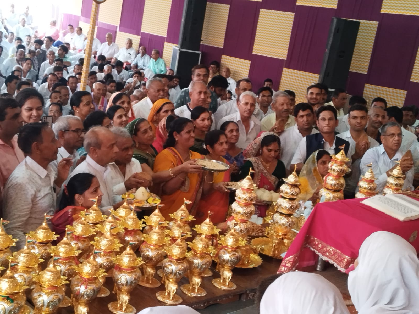 माताजी की सुयोग्य शिष्या पवित्र मति माताजी ,गरिमा मति माताजी, कर्णमति माताजी के पावन चातुर्मास 2024 की मंगल कलश स्थापना 22.7.2024 को बड़े ही हर्षोल्लास के साथ हुई , कार्यक्रम में आज प्रातः आदिनाथ मंदिर में,भगवान महावीर मंदिर में विशेष शांति धारा, अभिषेक के बाद आर्यिका श्री के पावन सानिध्य में आदिनाथ विधान किया गया दोपहर 1:00 बजे ध्वजारोहण के साथ कार्यक्रम का शुभारंभ हुआ इस अवसर पर आचार्य गुरु विद्यासागर जी महाराज की तस्वीर का अनावरण गुजरात, मध्य प्रदेश, महाराष्ट्र, राजस्थान एवं अन्य राज्य से पधारे हुए अतिथियों द्वारा किया गया, कार्यक्रम में ध्वजारोहण करने का सौभाग्य वर्धमान हॉस्पिटल धनपाल जी ,मोतीलाल जी, बांसवाड़ा को प्राप्त हुआ मंगलाचरण के बाद अष्टद्वव्यों के थाल सजाकर बड़े भक्ति भाव से महिलाओं द्वारा नाचते गाते हुए अर्ध चढ़ाए गए उनके माध्यम से इस अवसर पर जिनवाणी चैनल के माध्यम से कार्यक्रम का प्रसारण किया गया, इसके उपरांत विभिन्न गांव से पधारे हुए सभी आगंतुक मेहमानों का सकल जैन समाज के द्वारा दुपट्टा , साफा, तिलक लगाकर स्वागत किया गया पांच मुख्य कलशों की बोली आदिनाथ कलश, नेमिनाथ कलश ,गुरुवार ज्ञान सागर कलश, समय सागर कलश ,विवेक सागर कलश की बोलिया हुई प्रथम कलश प्राप्त करने का सौभाग्य गांधी राजेंद्र कुमार ,मीठालाल सुरभि मोटर्स नोगामा ,द्वितीय कलश पंचोरी कैलाश चंद्र केसरीमल जी मोदी परिवार ,तृतीय कलश राकेश कुमार रतनलाल जी, चतुर्थ कलश हित कुमार दीपेश कुमार हीरालाल जी गांधी ,पंचम कलश चातुर्मास कमेटी के अध्यक्ष निलेश कुमार जीतमल जी को प्राप्त हुआ एवं सभी उपस्थित धर्म प्रेमी बंधुओ द्वारा 101 कलश बोली के माध्यम से प्राप्त हुए इस अवसर पर माताजी को जिनवाणी भेंट करने का सौभाग्य खुशपाल जी जैन वर्धमान हॉस्पिटल बांसवाड़ा, भरत कुमार ,अमृतलाल, आशीष कुमार शेरगढ़ निवासी को प्राप्त हुआ इस अवसर पर नवयुवक मंडल के सभी सदस्यों ने पधारे हुए सभी उपस्थित मेहमानों का स्वागत किया कार्यक्रम का संचालन पथरिया से पधारे हुए नमन भैया एवं विधानाचार्य रमेश चंद्र गांधी द्वारा किया गया,इस अवसर पर समाज द्वारा सभी पधारे हुए अतिथियों के लिए वात्सल्य भोज की व्यवस्था की गई थी ,वात्सल्य भोज का पुण्यार्जक परिवार गांधी प्रीतेश कुमार, तेजमल जी को प्राप्त हुआ इस अवसर पर नवयुवक मंडल अध्यक्ष मुकेश गांधी चातुर्मास कमेटी अध्यक्ष निलेश जैन उपाध्यक्ष राजेंद्र गांधी उपाध्यक्ष नरेश पिंडारमिया जैन समाज कोषाध्यक्ष रमणलाल जैन ने सभी का आभार प्रकट किया उक्त जानकारी जैन समाज प्रवक्ता सुरेश चंद्र गांधी द्वारा दी गई ,इस अवसर पर आर्यिका श्री ने अपने प्रवचन में कहा कि चातुर्मास का अर्थ है चार माह के लिए वर्षा ऋतु में जो जीव जंतु