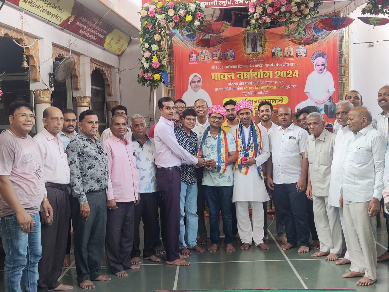 देव शास्त्र गुरु के परम भक्त व्यवहार कुशल प्रभावशाली व्यक्तित्व के धनी श्री शिखरचन्द टोंग्या मिश्रोली वाले धर्मपत्नी सद संस्कारों से युक्त श्रीमति शांतिदेवी के सुयोग्य सुपुत्र देवेंद्र कुमार टोंग्या का पर्वराज पर्यूषण के पावन अवसर निर्यापक श्रमण मुनि पुंगव 108 सुधा सागर महाराज सानिध्य में आयोजित दस दिवसीय श्रावक संस्कार शिविर सागर मध्य प्रदेश से लोटने पर रामगंजमंडी जैन समाज की और से श्री,,, भाव भीना अभिनंदन किया गया।