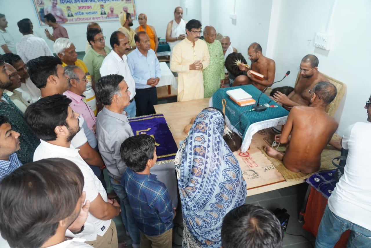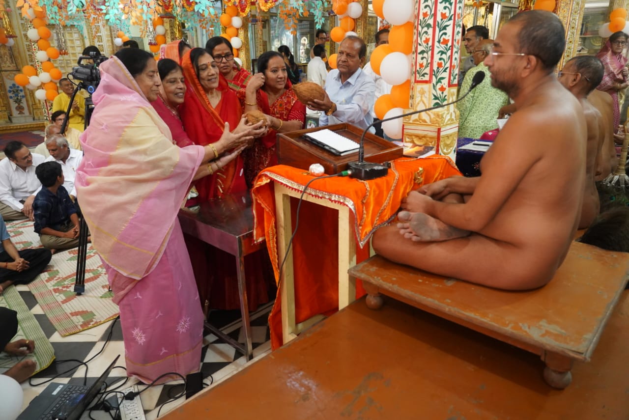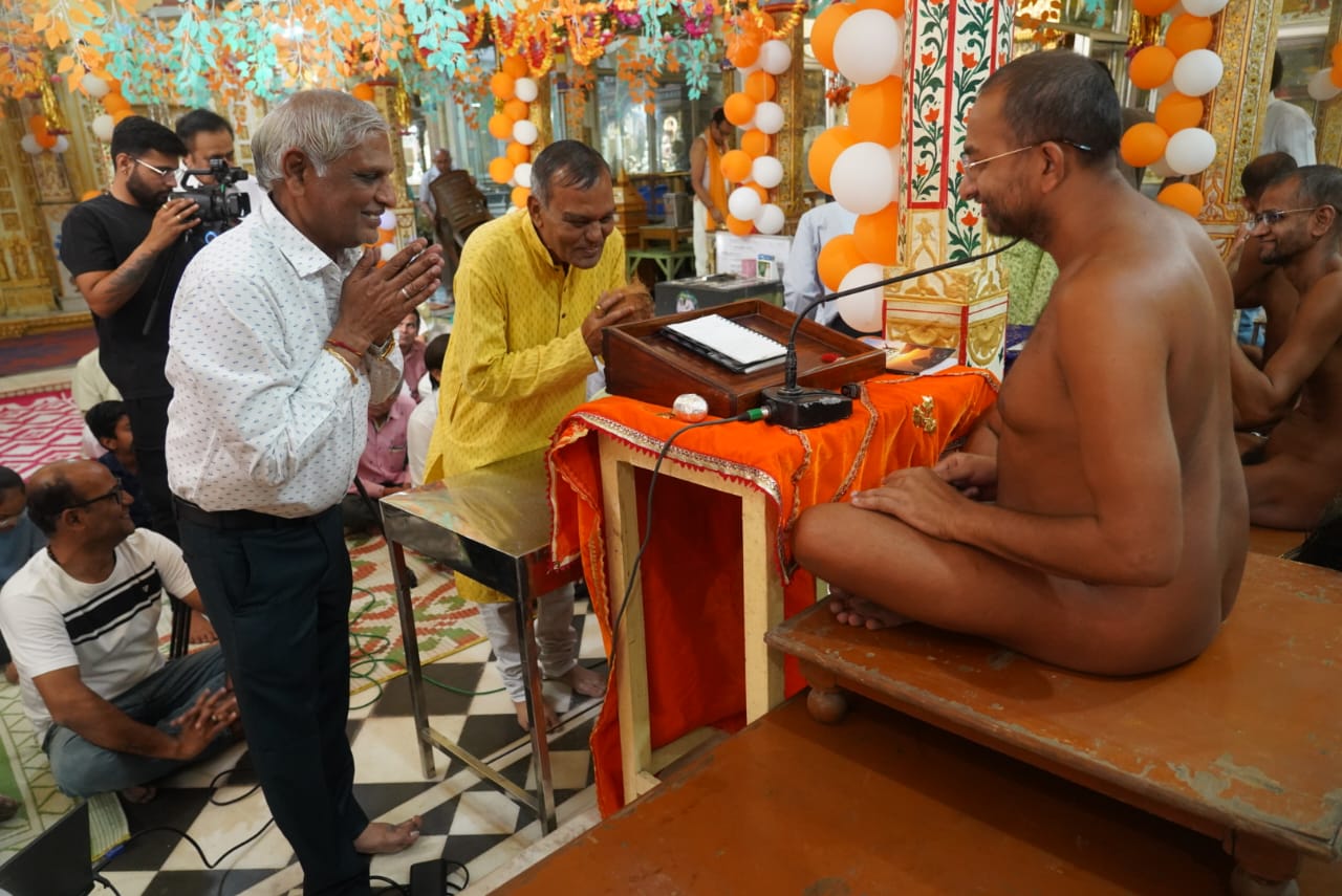 बड़ा मन्दिर में सर्वप्रथम मुनिश्री का पाद प्रक्षालन श्री कैलाश जी बाजटा परिवार एवं शास्त्र भेंट का सौभाग्य श्री निखिलेश सेठी परिवार को प्राप्त हुआ ।