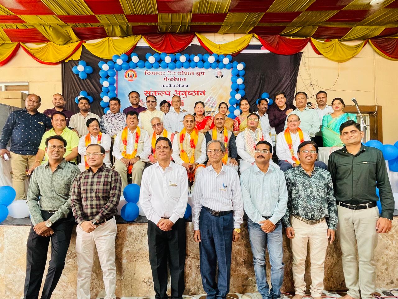 दिगंबर जैन सोशल ग्रुप फेडरेशन की इकाई उज्जैन रीजन का संकल्प अनुष्ठान सम्पन्न हुआ फेडरेशन के मिडिया प्रभारी राजेश जैन दद्दू ने बताया कि रीजन अध्यक्ष नवीन जैन रीजन सचिव मनीष जी जैन रीजन कोषाध्यक्ष रत्नेश जैन* का शानदार शपथ ग्रहण समारोह महावीर तपोभूमि उज्जैन पर एक गरिमामय में कार्यक्रम में संपन्न हुआ।