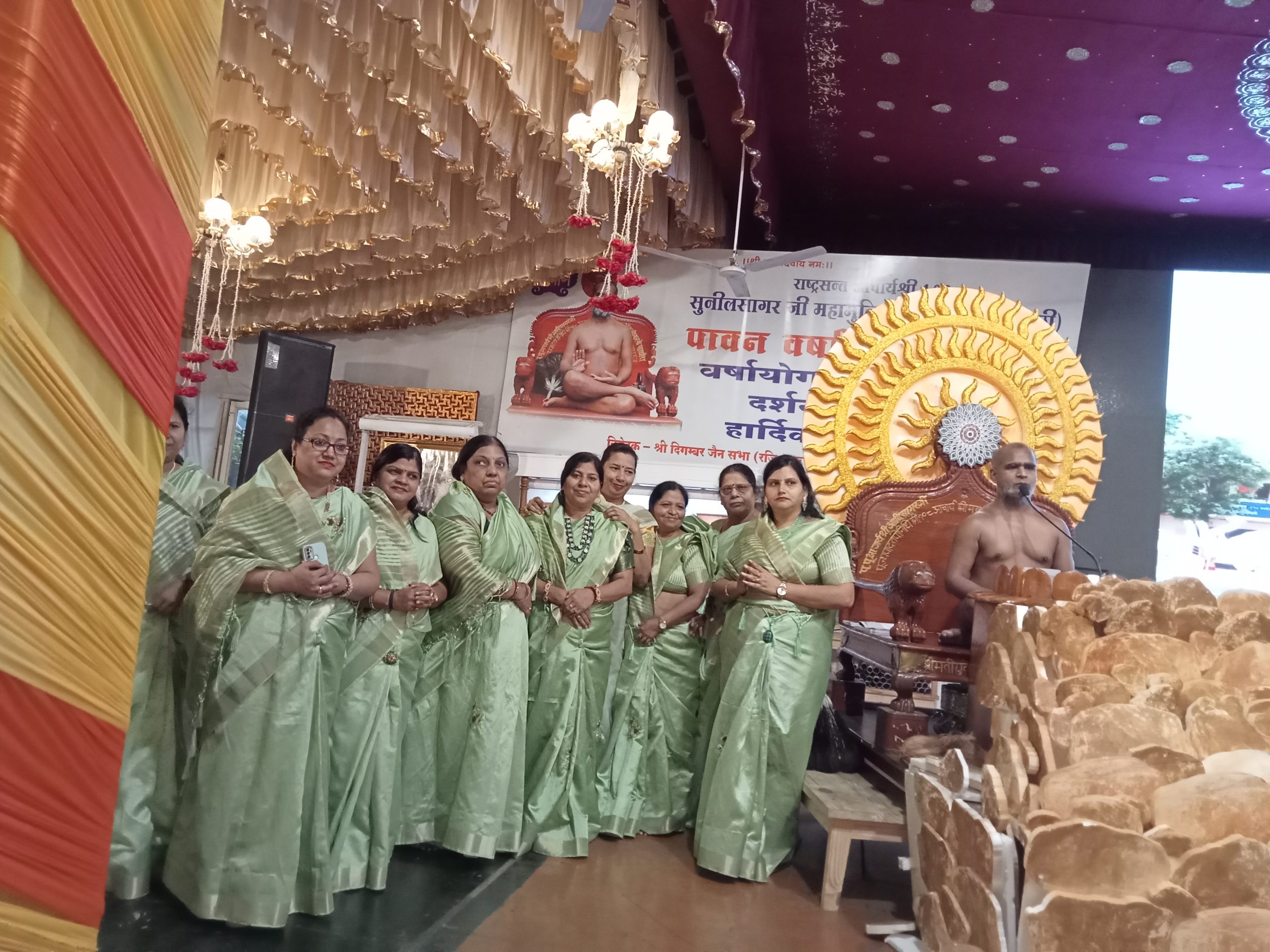 महिला मिलन लक्ष्मीनगर व फरीदाबाद द्वारा मंगलाचरण से शुरू धर्मसभा में आचार्य श्री ने कहा कि तीर्थंकरों के विहार से महामारी समाप्त होकर अदभुत शांति व्याप्त हो जाती है। एकमात्र अहिंसा ही सभी समस्याओं का समाधान है। गिरनारजी पर बोलते हुए आचार्य श्री ने कहा कि गलत बात का विरोध करना जरूरी है, हम अहिंसक हैं, कायर नही। अपने कर्त्तव्य पूरे न करना भी अपनी आत्मा की हिंसा है। हमें अपनी हिंसा भी कतई बर्दाश्त नही करनी। एकांतवाद से किसी का भला नही हो सकता। मैत्रीभाव से ही भला होगा। संसार के सभी सुख बाधाकारक हैं। वीतरागता में ही सच्चा सुख है। सामूहिक भोज में रात्रि भोजन का त्याग धर्म प्रभावना की दृष्टि से जरूरी है। समाज के अध्यक्ष सुनील जैन, चेयरमैन विजय जैन व मंत्री विपुल जैन ने सभी का स्वागत किया। इस अवसर पर जयपुर से प्रवर्तित भव्य पावापुरी-स्वर्ण रथ प्रवर्तन का शुभारंभ भी यहां किया गया।