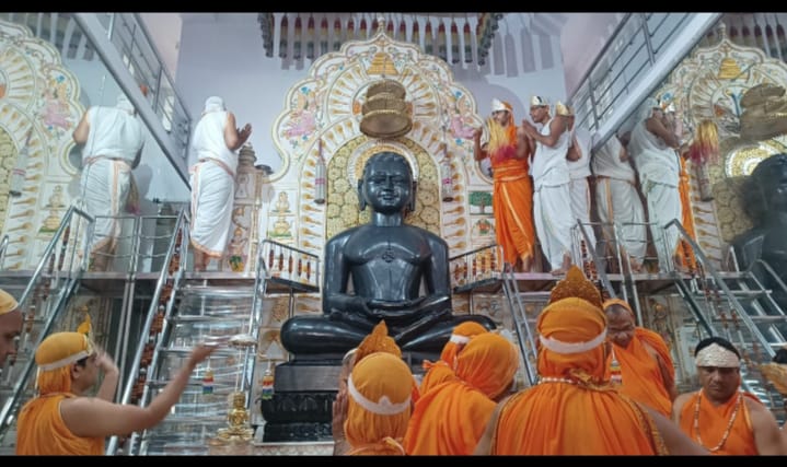 जंगल वाले बाबा मुनि श्री चिन्मय सागर जी महाराज की मंगल प्रेरणा से निर्मित आर. के. पुरम स्थित मुनिसुव्रत नाथ दिगंबर जैन त्रिकाल चौबीसी जैन मंदिर में संस्कार धानी जबलपुर से पधारे पंडित राजेश जी शास्त्री के सानिध्य में दस लक्षण विधान मंडल हर्षोल्लास के मंगलमय वातावरण में चल रहा है। मंदिर समिति के अध्यक्ष महावीर जैन महामंत्री पवन पाटोदी कोषाध्यक्ष ज्ञानचंद जैन ने बताया कि प्रातः काल 6 : 45 पर प्रतिदिन नित्य अभिषेक शांति धारा तत्पशात दस लक्षण विधान बूंदी से पधारे संगीतकार आयुष जैन एंड पार्टी के द्वारा संगीत की सुमधुर ध्वनियो में कराया जा रहा है। इन्द्र इंद्राणीया भक्ति रस में डूब डूब कर आनंद ले रहे है। तत्वार्थ सूत्र का वाचन भी किया जाता है। इस अवसर पर शांतिनाथ महा मंडल विधान भी किया गया। श्रीमति समिता जैन धर्मपत्नी विनोद जैन टोरडी के पंच मेरु के पाच उपवास होने पर शोभा यात्रा निकाली गई। राष्ट्रीय मीडिया प्रभारी एवम मंदिर समिति के प्रचार प्रसार मंत्री पारस जैन पार्श्वमणि ने जानकारी देते हुवे बताया कि दस लक्षण पर्व पर पूरे मंदिर को खूब सजाया गया।सजावट देखते ही मन बाग बाग हो जाता हैं। सायकालीन मंगल दीपकों के माध्यम से भव्य आरती देखते ही बनती है। 48 मंगल दीपकों के माध्यम से संगीत के माध्यम से भक्तामर आराधना की जाती है। पंडित जी श्री राजेश जी शास्त्री जी द्वारा जैन धर्म दर्शन के गुड रहस्यों को बड़ी सरल सहज भाषा में समझाया जा रहा है।जिसको सुनकर श्रद्धालु गण भाव विभोर हो रहे हैं।मूलनायक भगवान पर प्रथम अभिषेक महावीर सरवाडिया ज्ञानचंद जैन खजूरी वाले, मूल नायक भगवान पर शांतिधारा विनय जी प्रवीण जी सेठिया एवम संतोष वैभव दमोह वाले, भगवान पारसनाथ पर प्रथमांभिषेक चंद्रेश जैन हरसौरा परिवारजन एवं शांतिधारा महेश जी जैन एवम विवेक जी बंटी ने करने का सौभाग्य प्राप्त किया।इस अवसर पर सकल दिगंबर जैन समाज के महामंत्री विनोद जैन टोरडी एस. के. जैन जज रूप चंद जैन अमोलक चंद जैन अंकित जैन मनीष जैन हरक चंद गोधा उपस्थित थे।