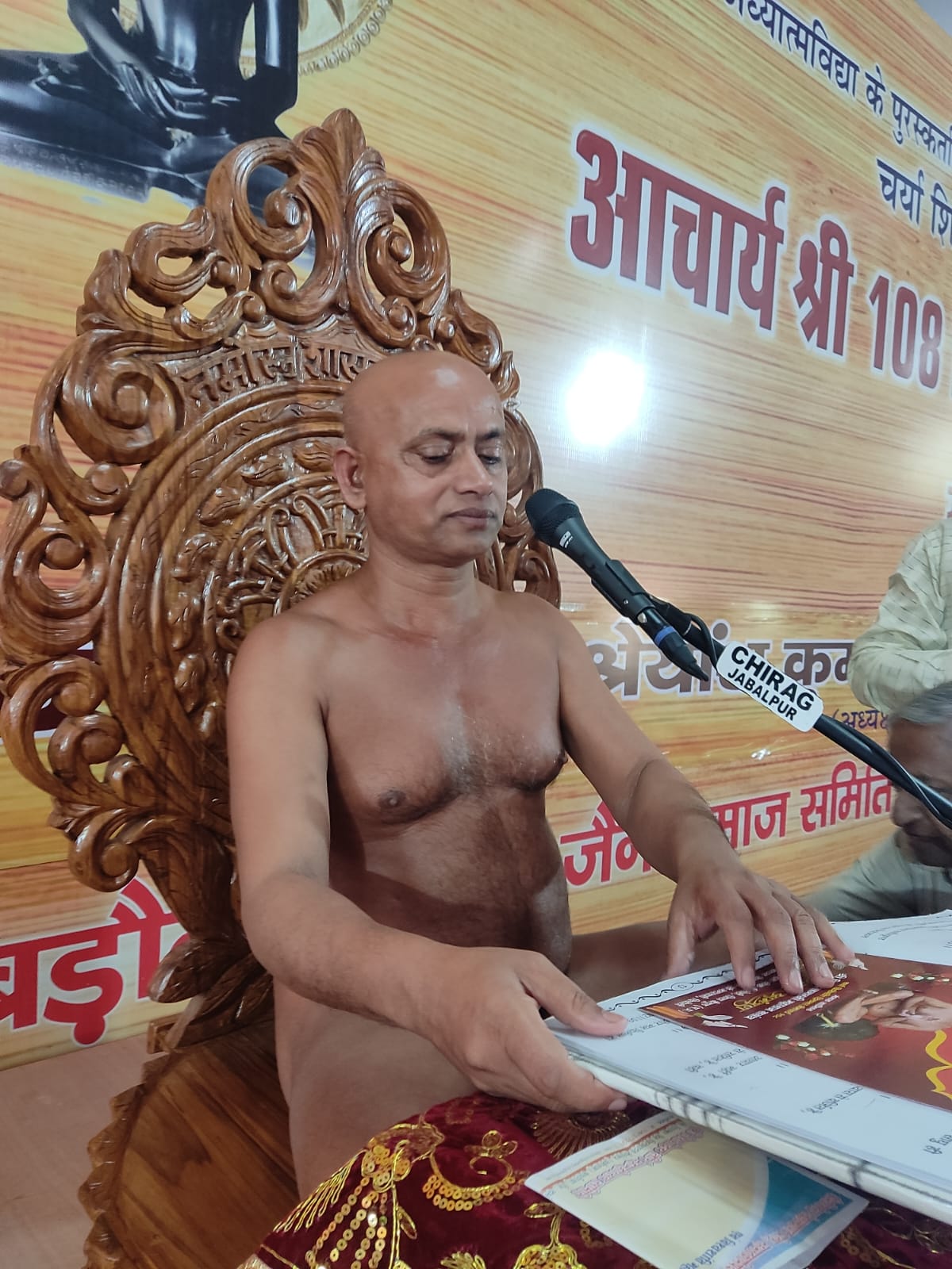 संकटों में भी धैर्य रखो। साहस पूर्वक जीवन जियो। धैर्य से हर विपत्ति को दूर किया जा सकता है। धर्म प्रिय बनो, दृढ धर्मी बनो। अपनी आवश्यकताओं को कम करो। आकांक्षाओं को घटाओ। दया, करुणा, प्रेम, सत्यता पर दृष्टि रखो। अंत में शांति हो वही कार्य करो। सबका हित करो। संक्लेशता बढ़े ऐसा कार्य मत करो। अपयश से बचो, यशपूर्ण कार्य करो।संचलन डॉक्टर श्रेयांस जैन ने किया।सभा मे प्रवीण जैन, सुनील जैन, अशोक जैन, धन कुमार जैन, आलोक सर्राफ, मनोज जैन, राकेश जैन, विनोद जैन, आदि थे।