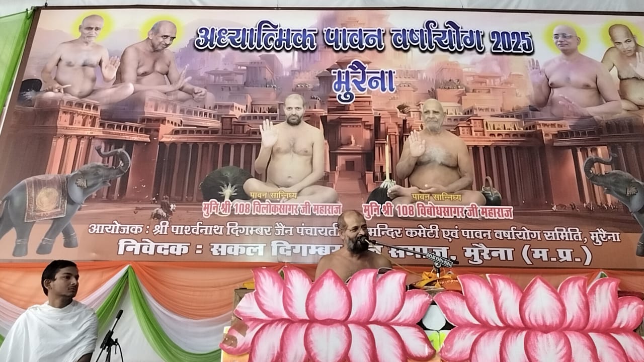 मुरैना (मनोज जैन नायक) वर्षायोग के चार माह धर्म ध्यान, पूजन, तप, स्वाध्याय, भक्ति एवं साधना के लिए सबसे उत्तम समय रहता है । इस समय का सभी श्रावकों को सदुपयोग करना चाहिए । इस अवसर पर यदि साधु संतों का समागम मिल जाएं तो सोने पर सुहागा है । साधु-संतों की महिमा उनके आध्यात्मिक ज्ञान, भक्ति, और प्रेम के संदेश में निहित है। वे समाज के लिए मार्गदर्शन का काम करते हैं, लोगों को धार्मिकता और सद्गुणों की ओर प्रेरित करते हैं । साथ ही अपने आचरण से, अपनी चर्या से, अपने उपदेशों से दूसरों के लिए उदाहरण स्थापित करते हैं। हम जिस प्रकार की संगति में रहते हैं, उसी के अनुसार हमारे विचार और व्यवहार हो जाते हैं। यदि हम बुरे लोगों के साथ रहते हैं, तो उनके अगुण हमारे अंदर प्रवेश कर जाते हैं। जिस प्रकार अग्नि के पास में पानी रखने पर वह गर्म हो जाता है, उसी प्रकार बुरे व्यक्तियों की संगति से उनके अगुण हमारे अंदर आ जाते हैं।