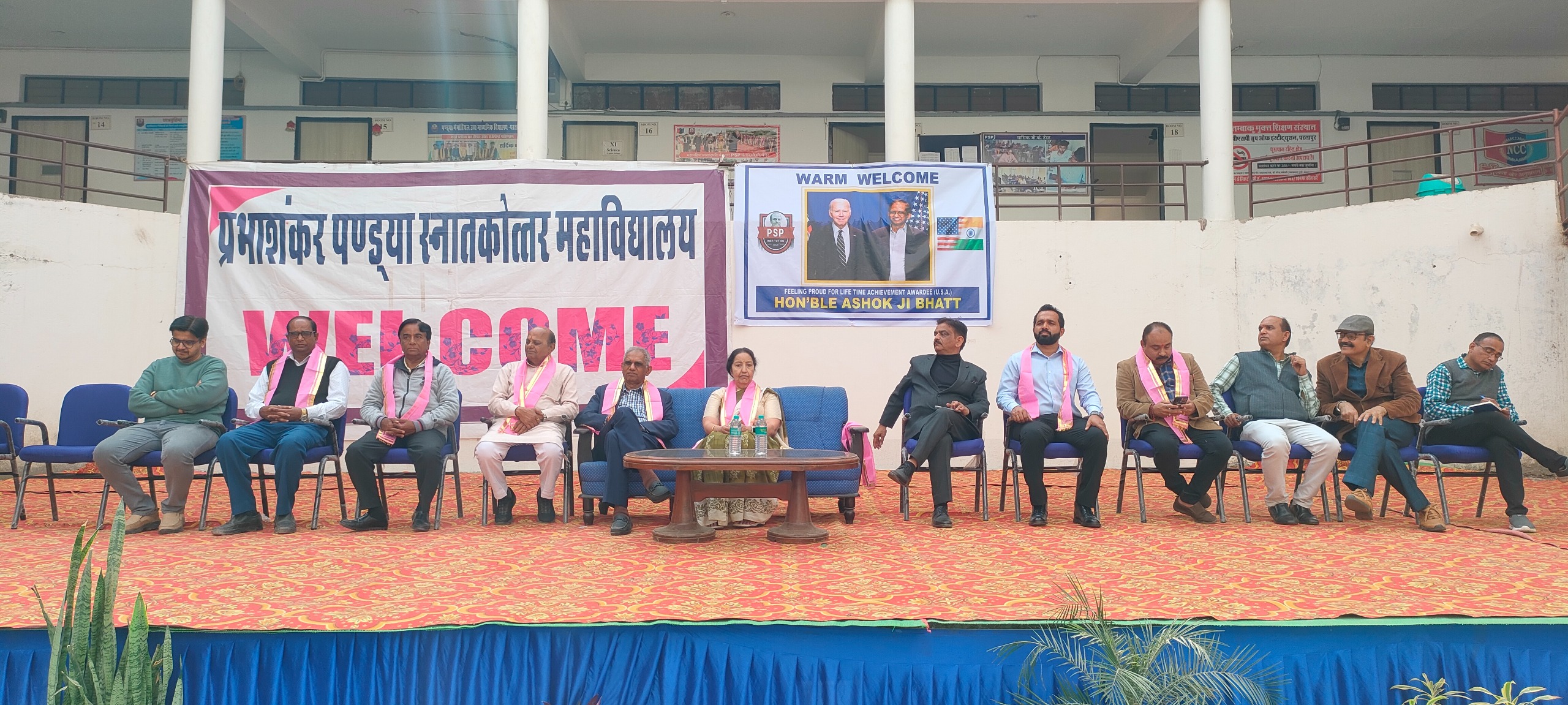 इस अवसर पर श्रीमती हेमलता भट्ट , विनोद भट्ट,पीयूषलता भट्ट, सी ई ओ भूपेन्द्र व्यास,परेश पण्ड्या,साहित्यकार हेमंत पाठक, नयनेश नागर ,यशदीप पटेल, सेवा निवृत कालूराम यादव, अजीत कोटिया गवर्निंग काउंसिल सदस्य महावीर इंटरनेशनल,उपाचार्य डॉ हिमांशु शर्मा, सूर्य सिंह चौहान, आशीष शर्मा एवं समस्त महाविद्यालय स्टाफ , छात्र-छात्राएं उपस्थित थे। एनसीसी के विद्यार्थियों द्वारा स्वागत किया गया। स्वागत गीत मयंक रावल ने प्रस्तुत किया। कार्यक्रम का संचालन दीपक पंड्या ने किया एवं आभार प्राचार्य डा रमेश चंद्र मंगल ने माना।