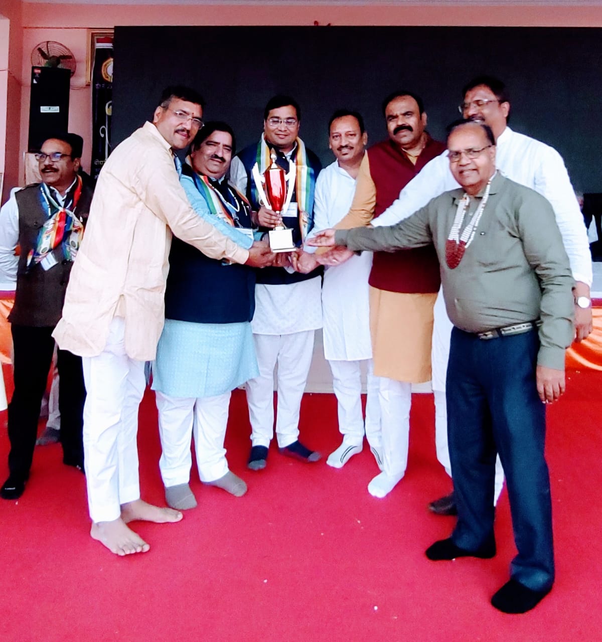 इंदौर (मनोज जैन नायक) अखिल भारतीय पल्लीवाल जैन राष्ट्रीय महासभा द्वारा इन्दौर समाज को श्रेष्ठ सामाजिक कार्यों के लिए नेशनल तृतीय अवार्ड से सम्मानित किया गया । मूलतः एज्यूकेशन प्रोत्साहन, दृष्टिहीन बच्चों को सद्भावना, भगवान महावीर स्वामी के सिद्धांतों को मंच से समय-समय पर उठाना, समाज गौरव सम्मान व वृद्धजनों का सम्मान समारोह आयोजित करने हेतु एवं राष्ट्रीय स्तर पर जैन गौरव पं प्रवर दौलतराम मेमोरियल राष्ट्रीय अवार्ड को सुनियोजित तरीके से प्रारंभ करने हेतु ये नेशनल अवार्ड से सम्मानित किया गया । अवार्ड प्राप्त करने हेतु इन्दौर पल्लीवाल समाज से अध्यक्ष राजेन्द्र जैन, पूर्व राष्ट्रीय महामंत्री राजीव रतन जैन एवं इन्दौर शाखा मंत्री इन्द्र कुमार जैन अलवर राष्ट्रीय महासभा अधिवेशन में पहुंचे । जिसमें राष्ट्रीय अध्यक्ष तपेश चौधरी, राष्ट्रीय महामंत्री महेश जैन, संयोजक सतीश जैन, दिल्ली वरिष्ठ समाजसेवीयों द्वारा नेशनल अवार्ड इन्दौर को प्रदान किया गया । इन्दौर पहुंचने पर अध्यक्ष राजेन्द्र जैन एवं मंत्री इन्द्र कुमार जैन ने प्राप्त पुरस्कार कार्यकारिणी की बैठक में इन्दौर समाज के गणमान्यजन परम संरक्षण सुमत प्रकाश, परामर्शदाता डाॅ अनुपम जैन, राष्ट्रीय उपाध्यक्ष श्रीमती सुधा जैन इत्यादि उपस्थित महानुभावों को समर्पित किया, सभी ने सामुहिक तालियां बजाकर अनुमोदना कर कार्यों की सराहना की, अंत में शांतिपाठ कर सभा को विसर्जित किया।
