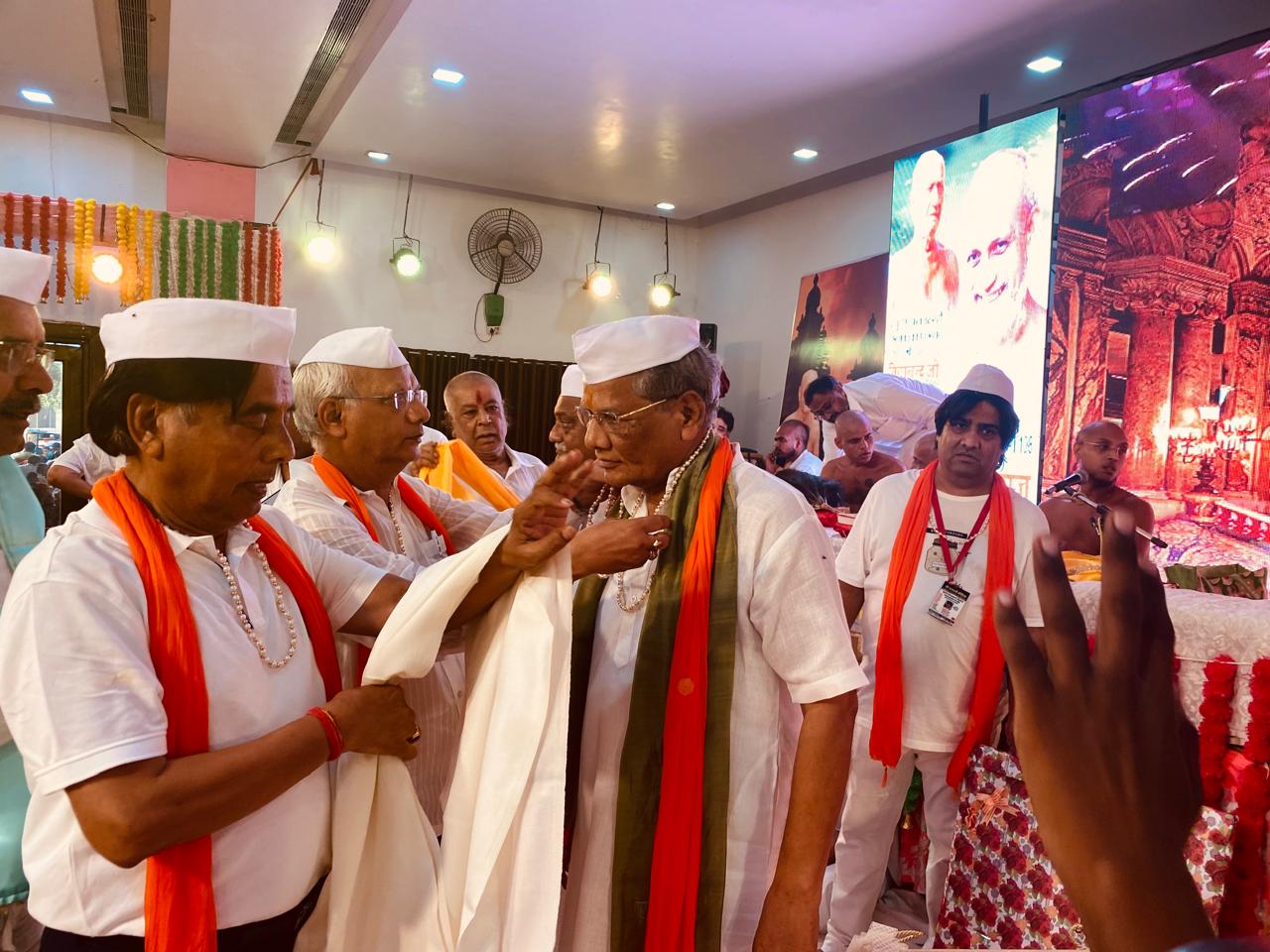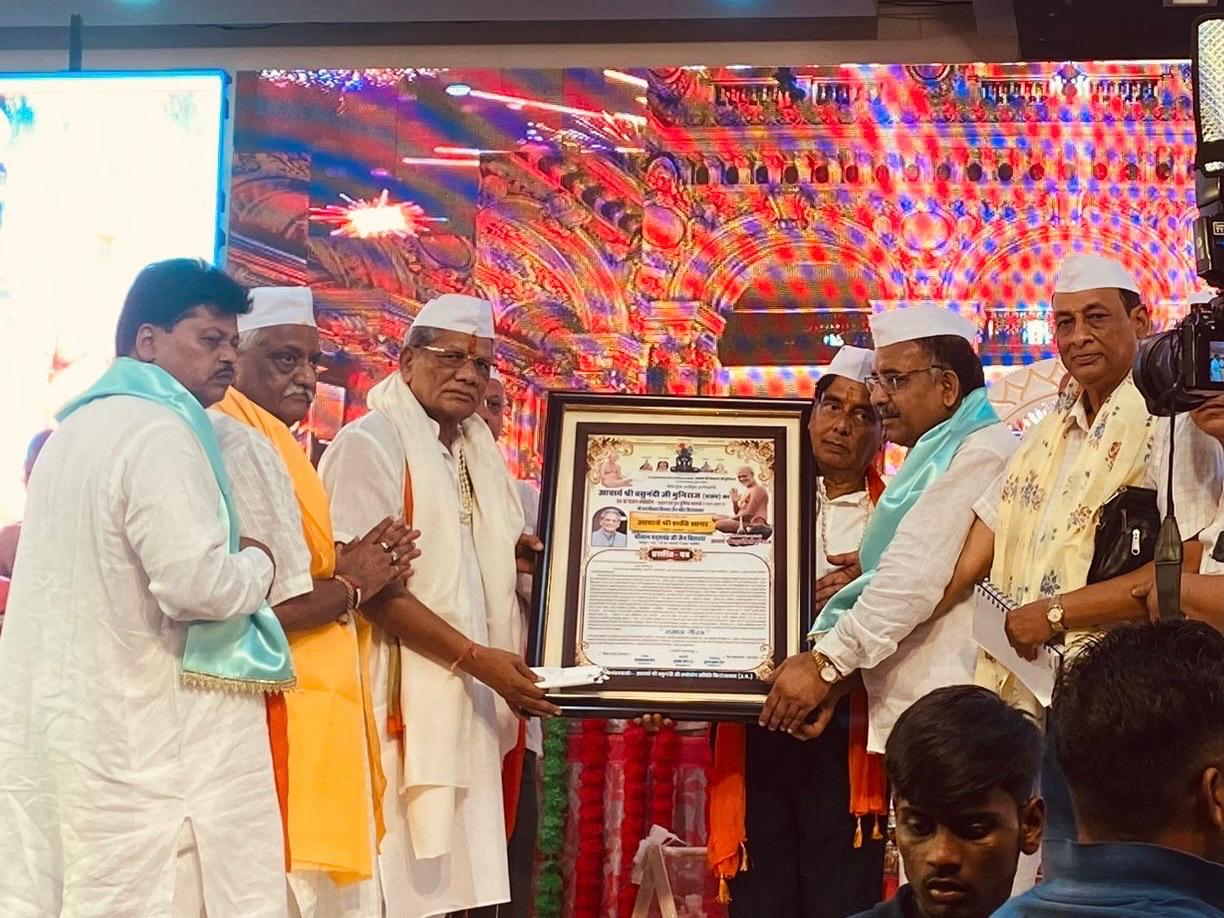 जयपुर – 21/07/24 – आचार्य पदारोहण शताब्दी महोत्सव वर्ष के अन्तर्गत प्रतिष्ठित आचार्य श्री शान्तिसागर राष्ट्रीय पुरस्कार समाज सेवा के उपलक्ष्य में जयपुर के पदम जैन बिलाला को गुरु पूर्णिमा के पावन अवसर पर प० पू० आचार्य वसुनंदी जी महामुनिराज के पावन सानिध्य में कांच की नगरी फ़िरोज़ाबाद में श्री दिगंबर जैन परिषद तथा वसुनंदी चातुर्मास समिति फिरोजाबाद द्वारा चातुर्मास कलश स्थापना समारोह में विशेष रूप से सम्मानित किया गया । इसके पूर्व धर्म जागृति संस्थान राजस्थान ने भक्ति के साथ आचार्य श्री को श्री फल भेंट किया कर मंगलमय आशीर्वाद प्राप्त किया, कार्यक्रम में धर्म जागृति संस्थान के राष्ट्रीय प्रचार मंत्री संजय जैन बड़जात्या कामां एवं महामंत्री सुनील पहाड़िया ने बताया कि परम मुनि भक्त व समाज सेवी पदम जैन बिलाला वर्तमान में जनकपुरी जैन मंदिर के अध्यक्ष , धर्म जागृति संस्थान के प्रांतीय अध्यक्ष सहित बहुत सी धार्मिक व सामाजिक संस्थाओं से निस्वार्थ सेवा भाव से जुड़े हुए है। साधु संतों के विहार आदि के समय पुलिस सुरक्षा तथा गुरु आज्ञानुरूप अहिंसक आहार के प्रचार प्रसार का महत्व पूर्ण कार्य किया है ,पूरे देश के अलावा जयपुर से गये सैकडो जन समुदाय की गरिमा मय उपस्थिति में सम्मान में तिलक, माला, दुपट्टा सॉल व प्रशस्ति पत्र एवं नगद राशि 21000/- रुपये प्रदान किया गया। बिलाला जी ने पुरुस्कार राशि वापस निर्ग्रंथ ग्रंथ माला समिति में प्रदत्त कर उदारता का परिचय दिया। प० मनोज शास्त्री द्वारा प्रशस्ति पत्र का वाचन किया गया बिलाला ने आचार्य श्री , परिवार , एवं प्रिय सहयोगियों के प्रति कृतज्ञता जाहिर करते हुए कहा कि गुरुओं के आशीष व सहयोगियों के सहयोग से ही यह सब सम्भव हो सका है, जैन महासभा के प्रतिनिधि राजाबाबू गोधा ने अवगत कराया कि श्री पदम बिलाला को सम्मानित करने पर सारे सकल जैन समाज ने बहुत बहुत बधाई दी है।