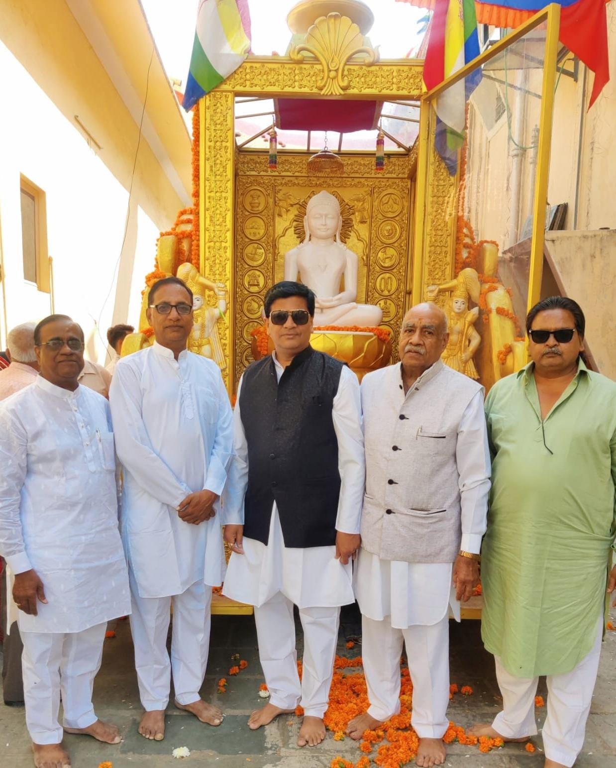 महावीर जयंती महापर्व पर केसरगंज जैन मंदिर से प्रारंभ होकर निकाली गई शोभा यात्रा की धानमंडी दरगाह बाजार में आगवानी करते हुए समिति अध्यक्ष अतुल मधु पाटनी परिवार द्वारा भव्य स्वागत किया गया जल सेवा,आइसक्रीम, टॉफी एवम मुखवास का वितरण करते हुए भगवान महावीर स्वामी का जयघोष किया गया