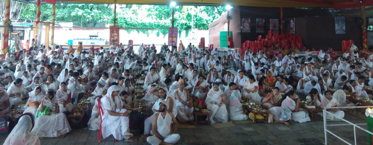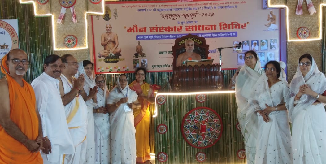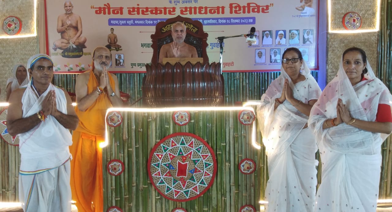 गुवाहाटी: फैंसी बाजार के भगवान महावीर धर्म स्थल में दस लक्षण धर्म की आराधना अत्यंत श्रद्धा व भक्ति भाव पूर्वक विभिन्न कार्यक्रमों के साथ की जा रही है। मौन संस्कार साधना शिविर एवं सभी धार्मिक कार्यक्रमों में अधिकाधिक संख्या में समाज के सभी सदस्य एवं महिलाएं तथा युवा भाग ले रहे हैं। पर्युषण पर्व के तीसरे दिन आज(बुधवार) को प्रातःश्रीजी की शांतिधारा अभिषेक, नित्य नियम की पूजन के उपरांत मंडल विधान की पूजन आचार्य श्री प्रमुख सागर महाराज ससंघ के सानिध्य में अत्यंत भक्ति भावपूर्वक संपन की गई। पर्युषण पर्व के तीसरे दिन आर्जव धर्म की व्याख्यान करते हुए आचार्य श्री ने कहा कि सर्वत समता भाव सहज – सरल दृष्टि, वस्तु का जैसा स्वभाव है उसे वैसा ही जानना, मानना और उस रूप प्रवृत्त होना ही आर्जव धर्म है। आचार्य श्री ने कहा कि माया का वजूद अदभुत है। इसके कारण इंसान की आंखों पर लोभ का चश्मा चढ़ जाता है, उसकी तृष्णाएं बढ़ती जाती है, लोभ ज्यो-ज्यो बढ़ता है इंसानियत घटती है। दिगंबर जैन पंचायत के अध्यक्ष महावीर जैन (गंगवाल) एवं मंत्री वीरेंद्र कुमार सरावगी ने पुण्य अर्जन करने वालों का हार्दिक अभिनंदन करते हुए धन्यवाद ज्ञापन किया। पुष्प वर्षा योग समिति के मुख्य संयोजक ओमप्रकाश सेठी ने बताया कि आज प्रातः आचार्य श्री ससंघ के मुखारविंद से शांतिधारा करने का परम सौभाग्य नथमल-अशोक कुमार पांडया परिवार गुवाहाटी एवं वीरेंद्र कुमार-बीना देवी सरावगी परिवार गुवाहाटी को प्राप्त हुआ।यह जानकारी प्रचार-प्रसार विभाग के सह संयोजक सुनील कुमार सेठी द्वारा एक प्रेस विज्ञप्ति में दी गई है।।