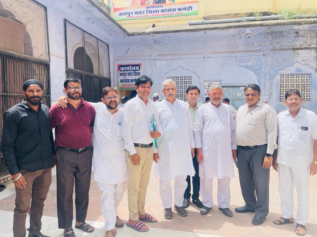 जयपुर। रविवार को जयपुर शहर जिला कांग्रेस कमेटी में प्रदेश चुनाव समिति के पर्यवेक्षक, पूर्व केंद्रीय मंत्री और CWC सदस्य भंवर जितेंद्र सिंह, कैबिनेट मंत्री साले मोहम्मद एवं जयपुर शहर जिला कांग्रेस कमेटी अध्यक्ष आर. आर.तिवारी को डीसीसी ऑफिस पहुंच कर अखिल भारतीय कांग्रेस कमेटी के पूर्व सचिव संजय बापना ने मालवीय नगर विधानसभा क्षेत्र का फीडबैक दिया और अपना आवेदन पत्र प्रस्तुत किया।
