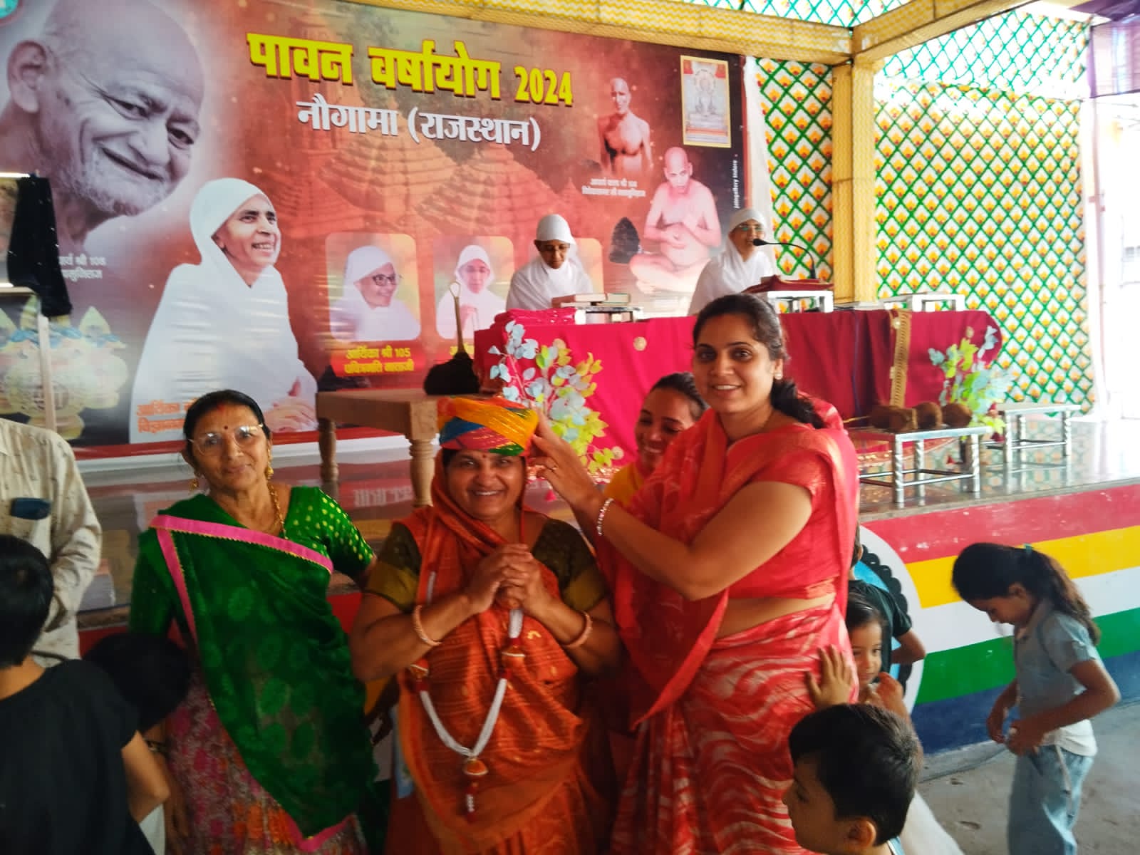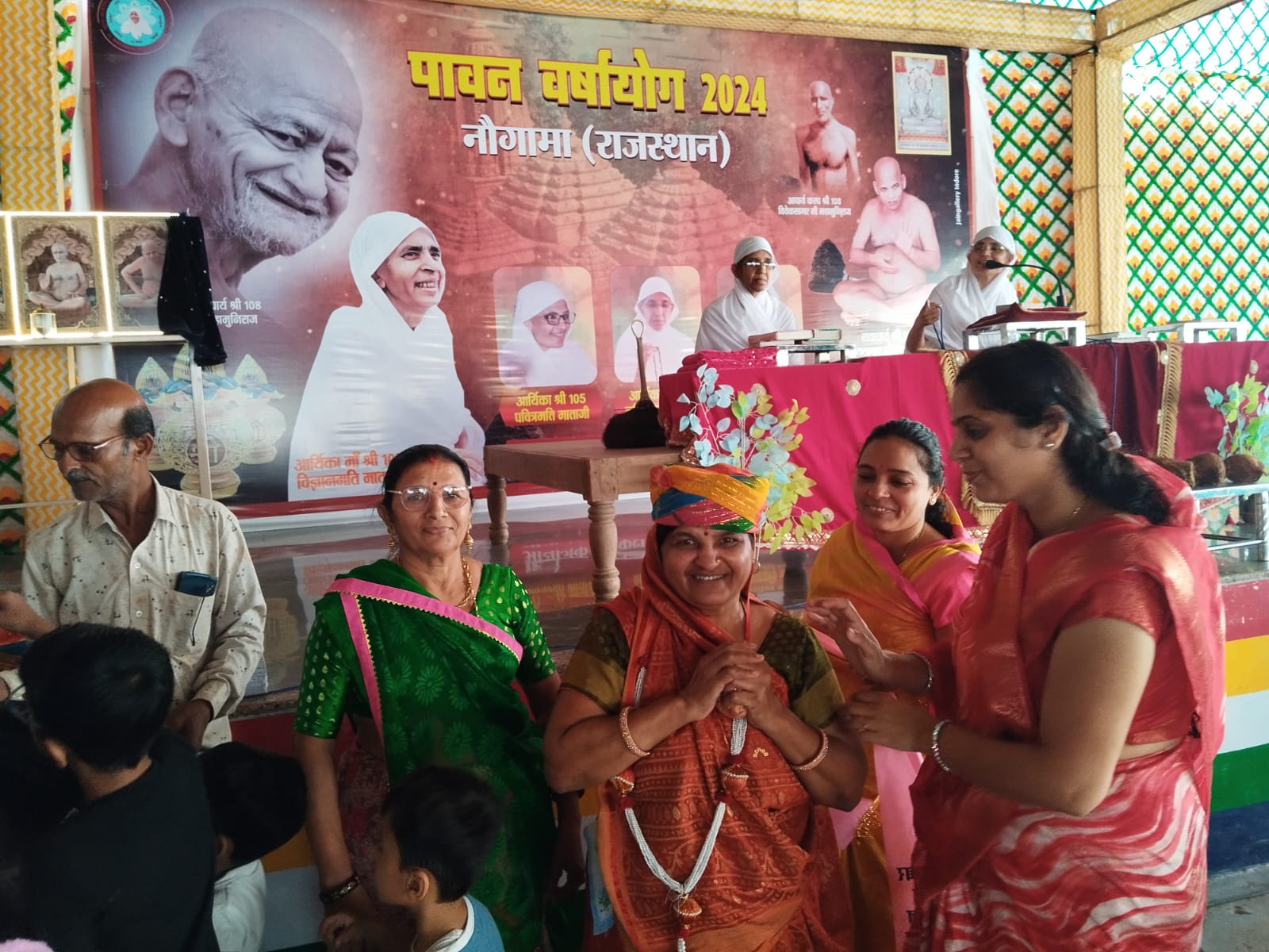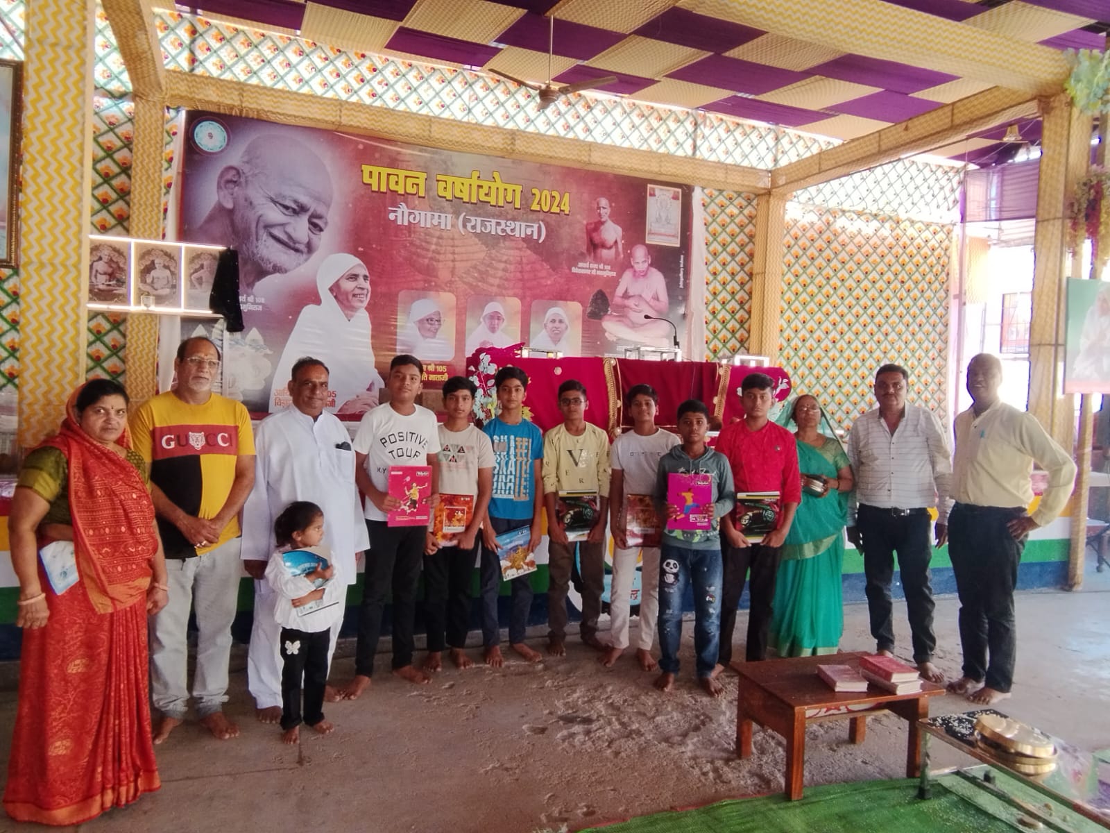 नौगामा नगरी में परम पूज्य पवित्र मति माताजी ससंघ के पावन सानिध्य में चातुर्मास कालीन वाचना में धर्म की भव्य प्रभावना बढ़ रही है कार्यक्रम में समाज के प्रवक्ता सुरेश गांधी ने कहा कि 6 अक्टूबर को प्रातः सुखोदय तीर्थ नसिया जी 1008 भगवान महावीर समवशरण आदिनाथ मंदिर में विशेष शांति धारा अभिषेक के बाद जैन पाठशाला के छात्रों द्वारा पंडित रमेश चंद्र गांधी कुसुमलता नानावटी के सानिध्य में चातुर्मास पंडाल में सामूहिक रूप से पूजन की गई पूजन के पश्चात सभी छात्रों को गांधी पंकज कुमार मोतीलाल की ओर से पुरस्कार वितरण किए गए कार्यक्रम में माताजी का चातुर्मास पंडाल मैं आगमन होने के बाद बिंदिया पंचोरी द्वारा मंगलाचरण किया गया मंगलाचरण के पश्चात बाहर से पधारे हुए अतिथियों का चातुर्मास समिति अध्यक्ष निलेश जैन ,उपाध्यक्ष राजेंद्र गांधी, नरेश जैन, महेंद्र गांधी, अंतिम बाला गांधी, विमला पंचोरी, भारती पंचोरी, मुकेश गांधी द्वारा महिलाओं एवं पुरुषों का पगड़ी, माला, दुपट्टा उड़ा कर पहनाकर भव्य स्वागत किया गया, उपस्थित सभी धर्म प्रेमी बंधुओ द्वारा माताजी को प्रवचन हेतु श्रीफल चढ़ाकर विनती की गई पवित्रमति माताजी, करण मती माताजी, गरिमा मति माताजी का मंगल प्रवचन हुआ जिसमें माताजी ने अपने मंगल प्रवचनों श्रृद्धालुओं को सम्बोधित करते हुए कहा कि संसार में मनुष्य के दुखों का सबसे बड़ा कारण है परिग्रह इन दुखों को मिटाने के लिए हमें परिग्रह कम करना है एवं परिग्रह का परिमाण करना चाहिए साथ ही माताजी ने बताया कि आजकल मोबाइल का दुरुपयोग बढ़ता जा रहा है चाहे महिला हो पुरुषों छोटे बच्चे हो युवा हो दिन भर एक ही काम रहता है मोबाइल देखना और मोबाइल से कहीं दुष्परिणाम सामने आ रहे हैं, माताजी ने कहा कि आगामी दिनों में पिच्छी परिवर्तन, सर्वतो भद्र विधान एवं दीक्षा जयंती बड़े हर्षोल्लास के साथ मनाना है चातुर्मास का समय कम बचा है जितना धर्म का लाभ ले सको लेना है कार्यक्रम का संचालन दीपक पंचोरी द्वारा किया गया उक्त जानकारी जैन समाज प्रवक्ता सुरेश चंद्र गांधी द्वारा दी गई।