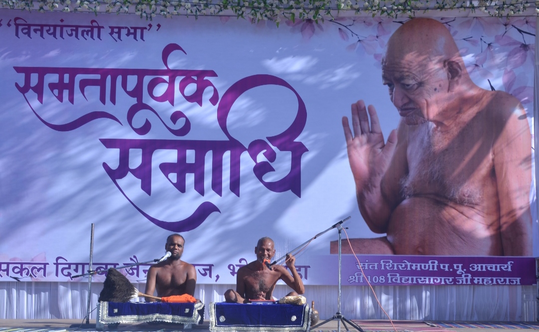 दिगंबर जैन समाज ट्रस्ट के अध्यक्ष सोहनलाल गंगवाल ने सभी के सहयोग के प्रति आभार व्यक्त किया। पदमचंद काला ने सभा का संचालन किया। शहर की सभी कॉलोनी से बड़ी संख्या में समाजजन उपस्थित होकर संत शिरोमणि आचार्य श्री विद्यासागर जी महाराज की सल्लेखनापूर्वक समाधि पर श्रद्धांजलि अर्पित कर साक्षी बने।