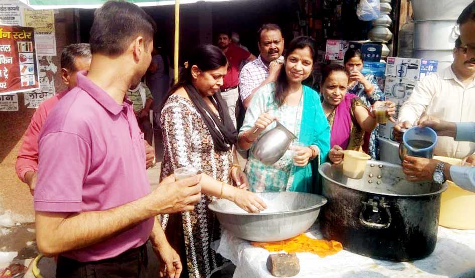 गन्ने का रस वितरित करती महिला मंडल की पदाधिकारी……………(डा. आर. के. जैन)