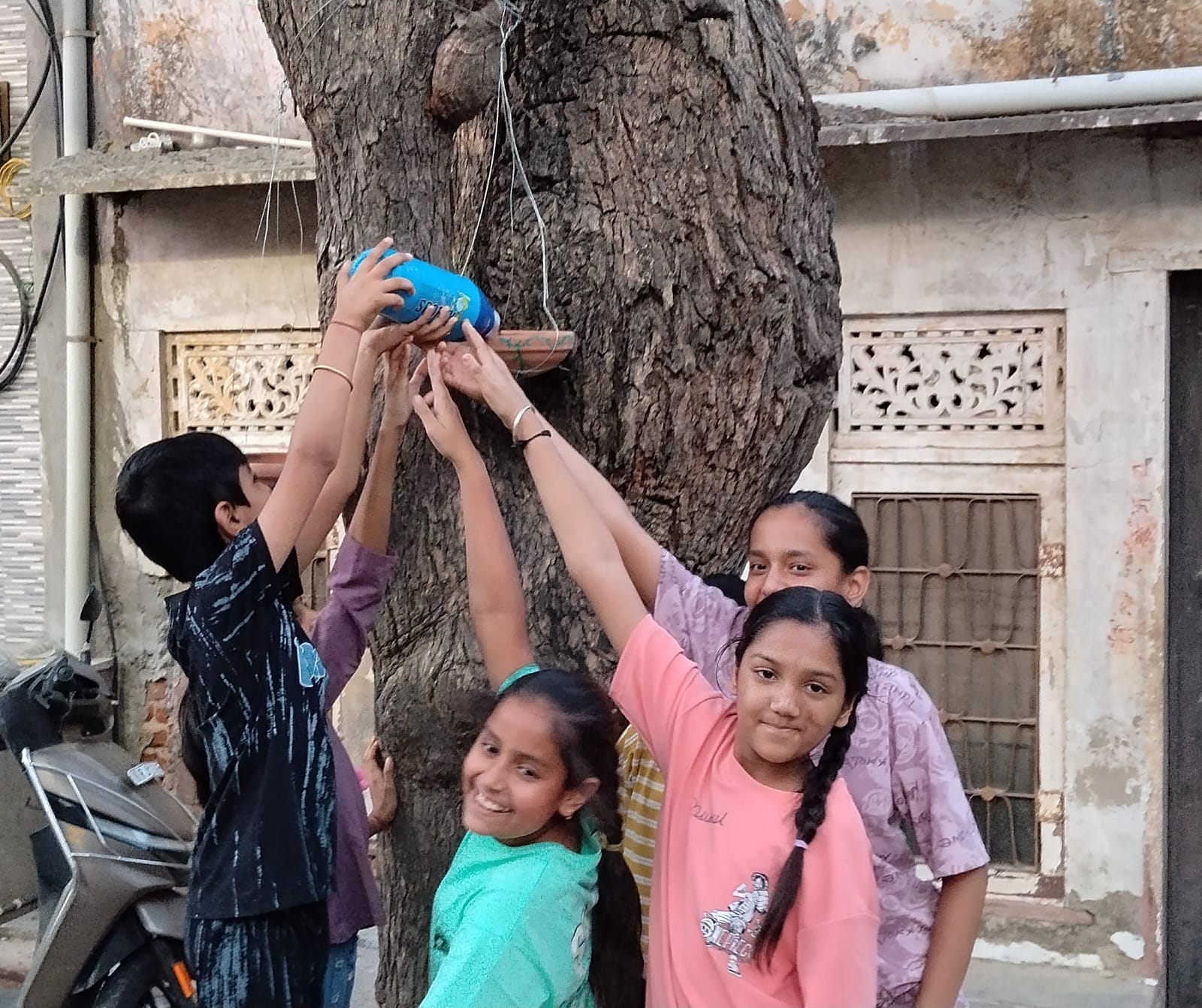 सीकर शहर में भीषण गर्मी में मूक पक्षियों के लिए बांधे परिंडे