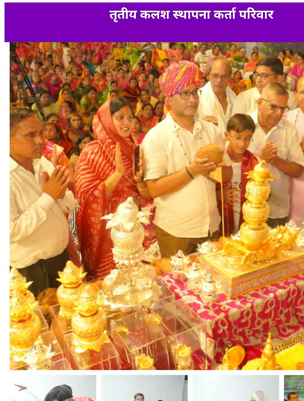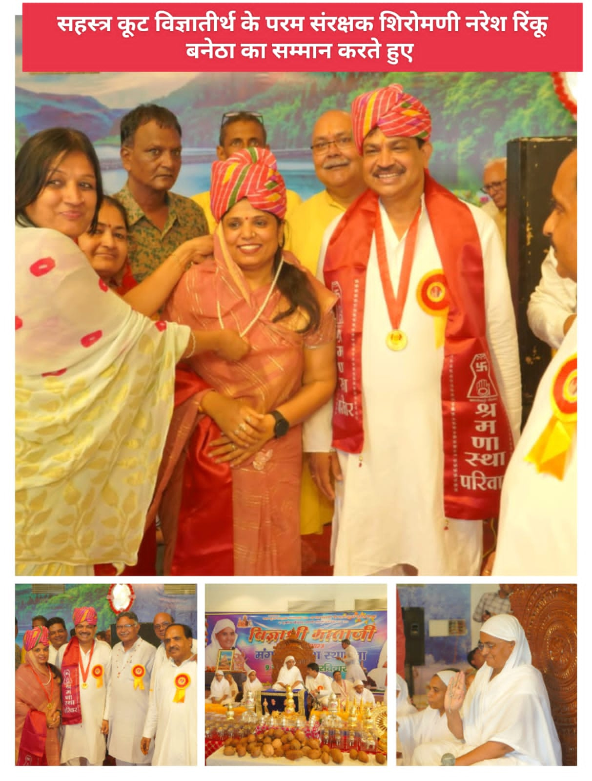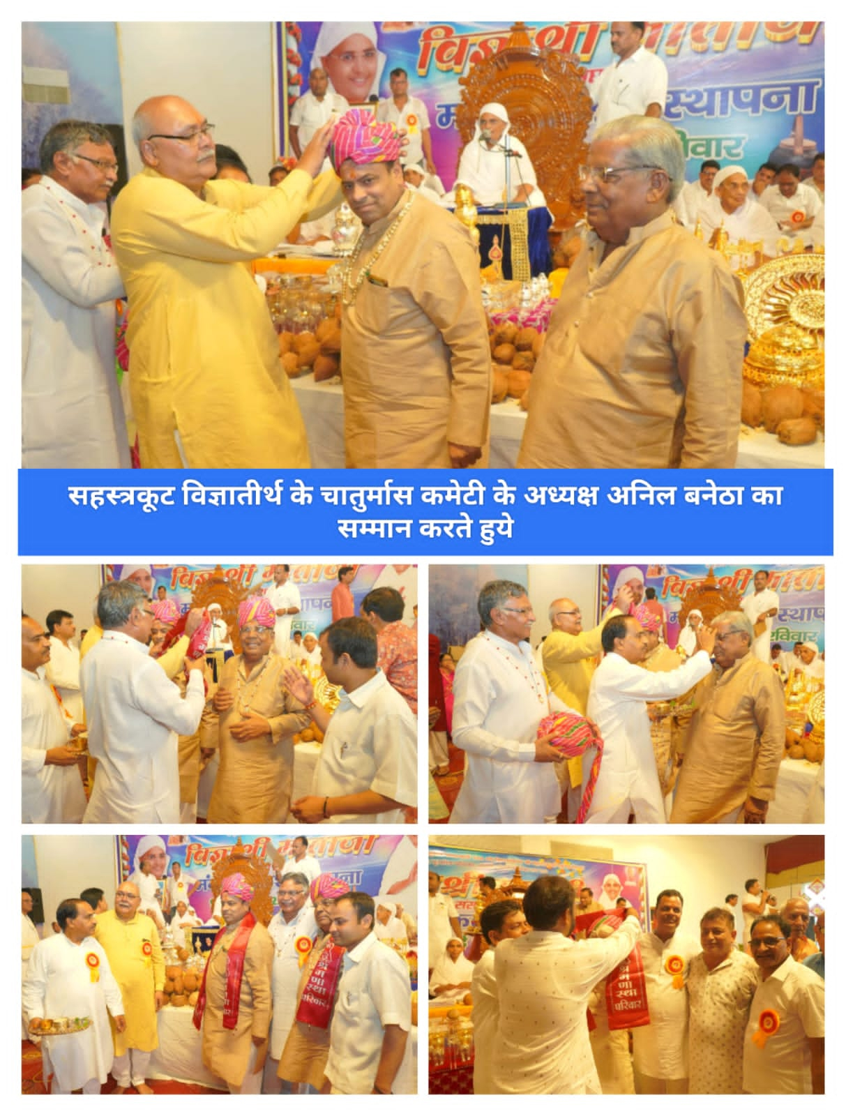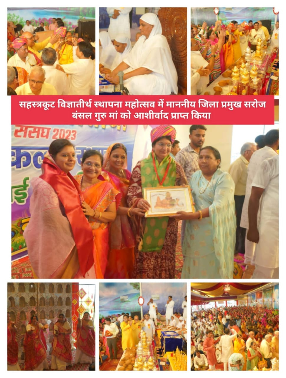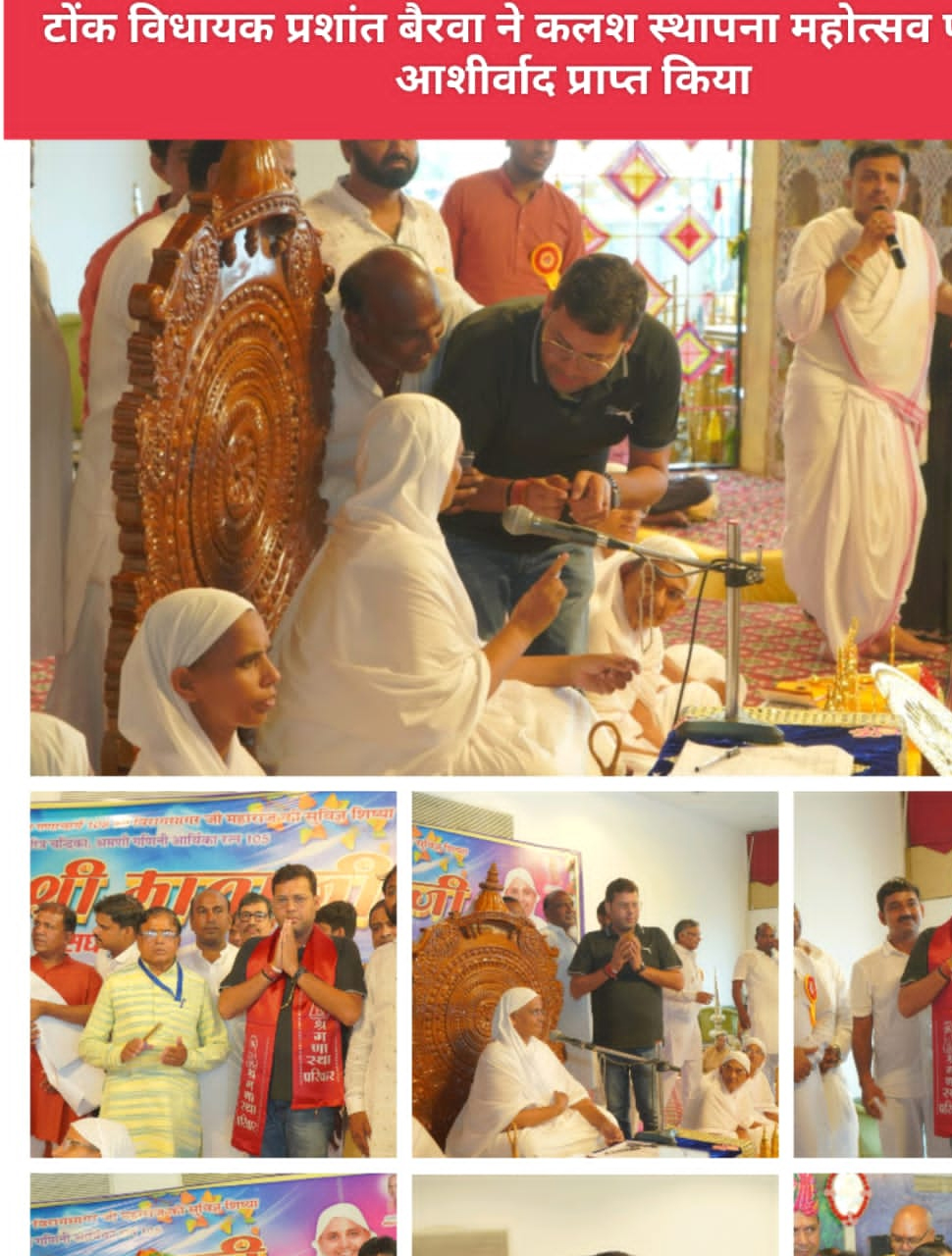 9 जुलाई रविवार को आचार्य विराग सागर जी महाराज की परम शिष्य गणिनी विज्ञाश्री माताजी ससघ वर्षा योग कलश स्थापना समारोह में दूर-दूर गांव से मुनि भक्त उमड़े समारोह में चित्र अनावरण मंगलाचरण की प्रस्तुति से प्रारंभ हुआ समारोह स्थल पर दोपहर को रामाज रिसोर्ट गुंसी हाईवे पर संपन्न हुआ जिसमें बाहर से पधारे गणमान्य जिला प्रमुख टोक सरोज बंसल सतीश मंजू जैन कासलीवाल जयपुर संरक्षक शिरोमणि नरेश जैन बनेठा जिला टोंक प्रशांत बैरवा विधायक टोंक दूर-दूर गांव से अनेक भक्त इस समारोह में पहुंचकर गुरु मां का आशीष प्राप्त किया गुरु मां ने अपने आशीष में भक्तों को बताया नया सहस्त्र कूट जिनालय के दर्शन करके भक्तों धन्य हुए हैं
