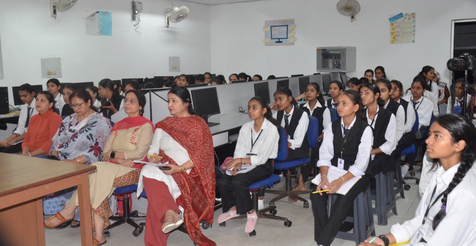 लेक्चर में भाग लेती शिक्षिकाएं व छात्राएं………………(डा. आर. के. जैन)