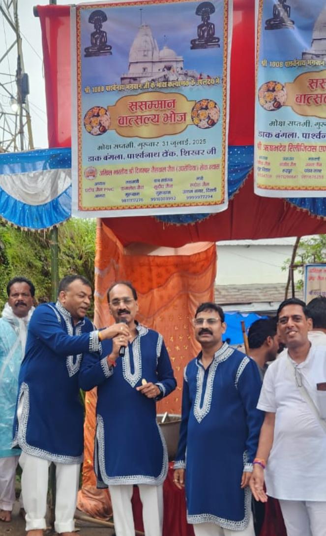 सेवा न्यास परिवार के महामंत्री सीए कमलेश जैन गुरुग्राम ने बताया कि विगत वर्षों की भांति इस वर्ष भी भगवान पार्श्वनाथ स्वामी के मोक्ष कल्याणक पर श्रीसंमेदशिखरजी पर्वत पर स्थित डाक बंगले पर 31 जुलाई को तीर्थ वंदना पर आने वाले सभी साधर्मी बंधुओं के लिए वात्सल्य भोज की व्यवस्था न्यास परिवार की ओर से रखी गई थी । इस व्यवस्थावके तहत लगभग आठ से दस हजार लोगों ने भोजन ग्रहण किया ।
