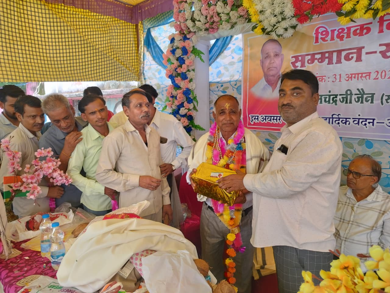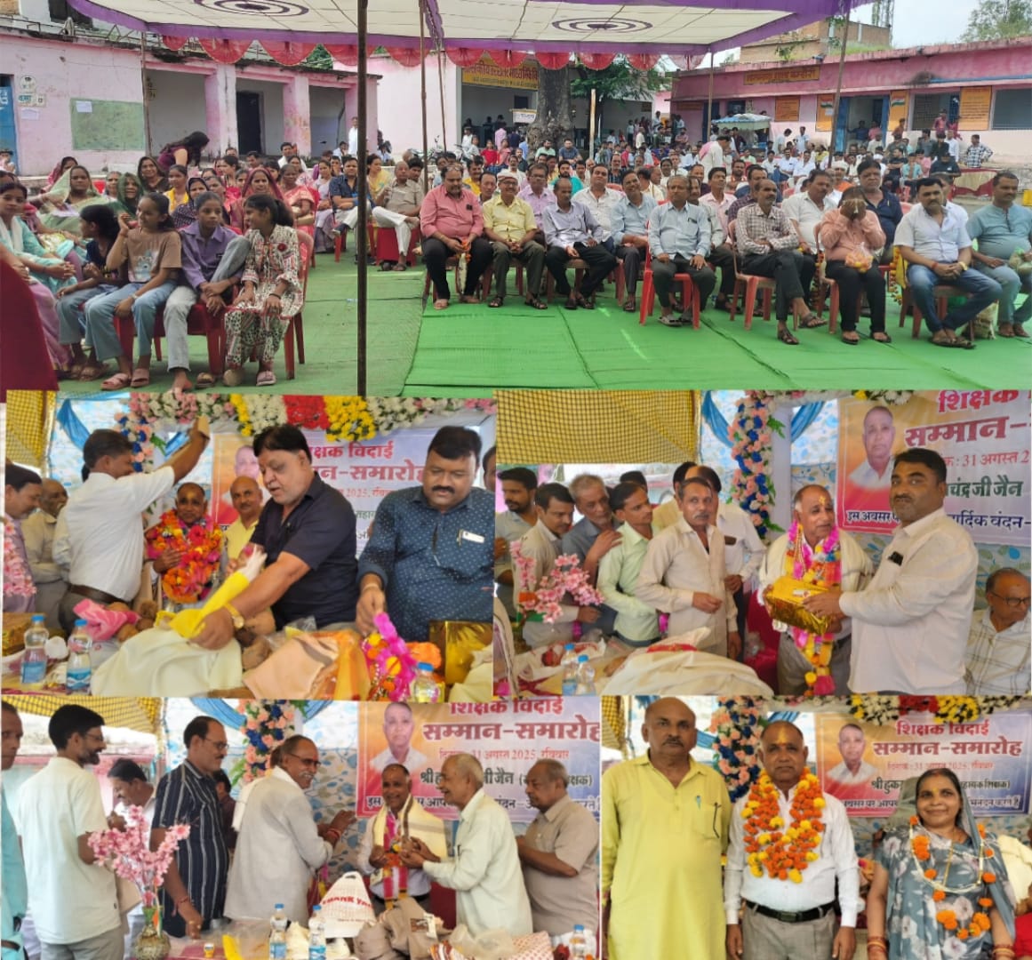 शिक्षक हुकमचन्द जैन की सेवानिवृत्ति पर आयोजित विदाई समारोह में सम्मानित कर किया गुणगान