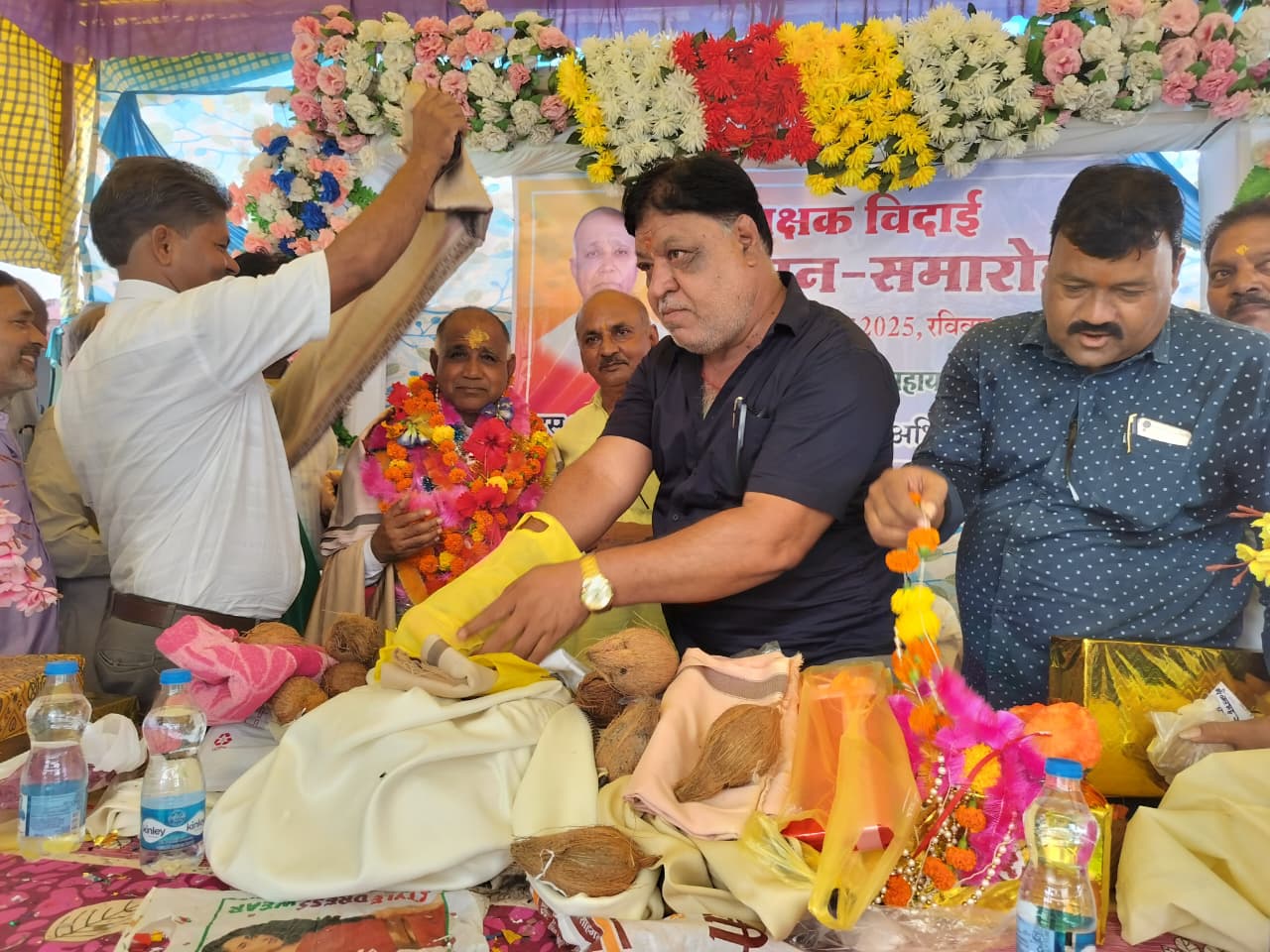 विदाई समारोह में अध्यक्षता कर संकुल प्राचार्य जगदीश प्रसाद पचौरी, विशिष्ट अतिथि ग्राम पंचायत बम्हौरी के सरपंच प्रतिनिधि भानुप्रताप सिंह (छुट्टू राजा), विभिन्न संगठनों से संबध्द वरिष्ठ पत्रकार राजेश रागी बकस्वाहा, प्रभारी प्राचार्य रामगोपाल सिंह निवार, दुरग सिंह मझगुवांघाटी, पुष्पेन्द्र सुनवाहा, दिनेश मलैया खेजरा तथा देवेन्द्र नामदेव, बृजेन्द्र सिंह , राजकुमार पांडे तथा राजाराम पाठक,पूरन सिंह सहित क्षेत्रीय स्कूलों के प्राचार्य , शिक्षक व कर्मचारियों के साथ ही क्षेत्र के सैकड़ों जनप्रतिनिधि , विभिन्न संगठनों के पदाधिकारी, गणमान्य नागरिकों ने उनकी समर्पित सेवाओं उल्लेखनीय कार्यों के प्रति उनका गुणगान करते हुए सम्मानित किया।