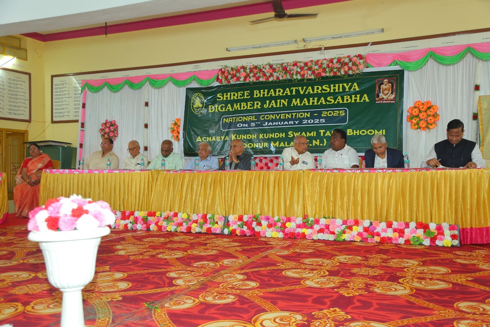 श्री भारतवर्षीय दिगम्बर जैन महासभा का राष्ट्रीय अधिवेशन (धर्म संरक्षिणी, तीर्थ संरक्षिणी, श्रुत संवर्धिनी, महिला,युवा महासभा) रविवार, दिनांक 05 जनवरी 2025 को प्रातः 9ः45 बजे; स्थल: आचार्य कुन्दकुन्द स्वामी तपोस्थली, पुन्नरमलाई (तमिलनाडु) पर महासभा के राष्ट्रीय कार्याध्यक्ष श्री रमेश जैन तिजारिया की अध्यक्षता में सम्पन्न हुई।