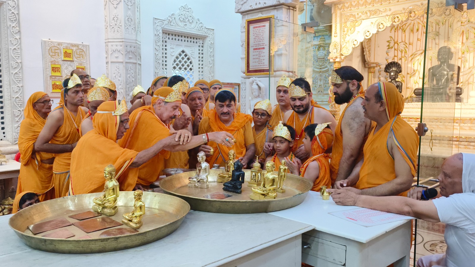 गुवाहाटी: स्थानीय फैंसी बाजार स्थित श्री दिगंबर जैन(बडा) मंदिर में प्रयूर्षण पर्व के पूर्व जिनेंद्र भगवान का बृहद कलशाभिषेक का आयोजन किया गया। इस मौके पर 1008 श्री नेमिनाथ भगवान व आदिनाथ भगवान आदि जिनेंद्र प्रतिमाओं का प्रक्षाल (मार्जन) किया गया। तत्पक्षात चयनित परिवारो को श्रीजी का सप्रथम कलशाभिषेक करने का सौभाग्य प्राप्त हुआ। कार्यक्रम में समाज के बच्चे पुरूष एवं महिलाओं ने पारंपरिक वेशभूषा में भाग लेकर पुणयार्जन किया। यह जानकारी समाज के प्रचार- प्रसार विभाग के सहसंयोजक सुनील कुमार सेठी द्वारा दी गई है।