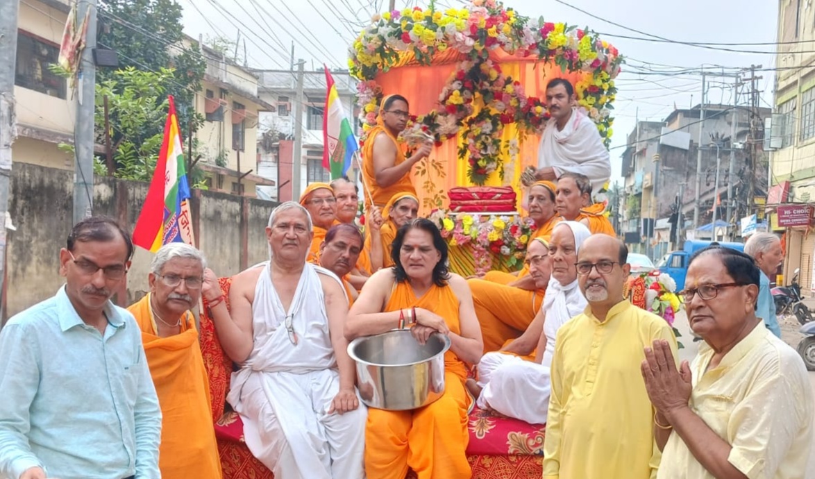 गुवाहाटी : क्षुत पंचमी के पावन अवसर पर फैंसी बाजार स्थित श्री दिगंबर जैन (बड़ा) मंदिर में क्षुत पंचमी पर्व विभिन्न धार्मिक आयोंजन के साथ हर्षोल्लास पूर्वक मनाया गया। श्री दिगंबर जैन पंचायत (गुवाहाटी) के उपाध्यक्ष ओम प्रकाश सेठी द्वारा प्रदत्त जानकारी के अनुसार यह पर्व प्रतिवर्ष ज्येष्ठ मास में शुक्ल पक्ष की पंचमी को मनाया जाता है। जैन परंपरा के अनुसार क्षुत पंचमी पर्व ज्ञान की आराधना का महापर्व है। क्योंकि ज्ञान ही एक मात्र ऐसा अक्षय तत्व है जो कहीं भी, कभी भी, किसी भी अवस्था में और किसी भी काल में मनुष्य का साथ नहीं छोड़ता। यह पर्व जैन भाइयों को वीतरागी संतो की वाणी सुनने, आराधना करने और प्रभावना करने का संदेश देता है। इस अवसर पर जिनवाणी को गाड़ी में विराजमान कर ढोल – नगाडो़ के साथ एक भव्य शोभायात्रा निकाली गई। शोभायात्रा में जैन बंधु ,माताए, बहने एवं बच्चे अपने-अपने सिर पर मां जिनवाणी लेकर चल रहे थे। शोभायात्रा के पश्चात मां जिनवाणी की पूजा-अर्चना की गई एवं श्री जिनेंद्र प्रभु का अभिषेक एवं शांतिधारा कि गई। यह जानकारी समाज के प्रचार- प्रसार विभाग के मुख्य संयोजक ओमप्रकाश सेठी एवं सहसंयोजक सुनील कुमार सेठी द्वारा एक प्रेस विज्ञप्ति में दी गई है।